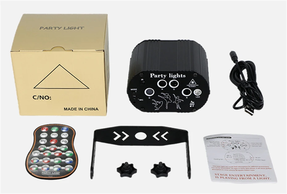 1 * Лампа, 1 * пульт дистанционного управления (включая батарею), 1 * руководство, 1 * кабель, 2 * Винт