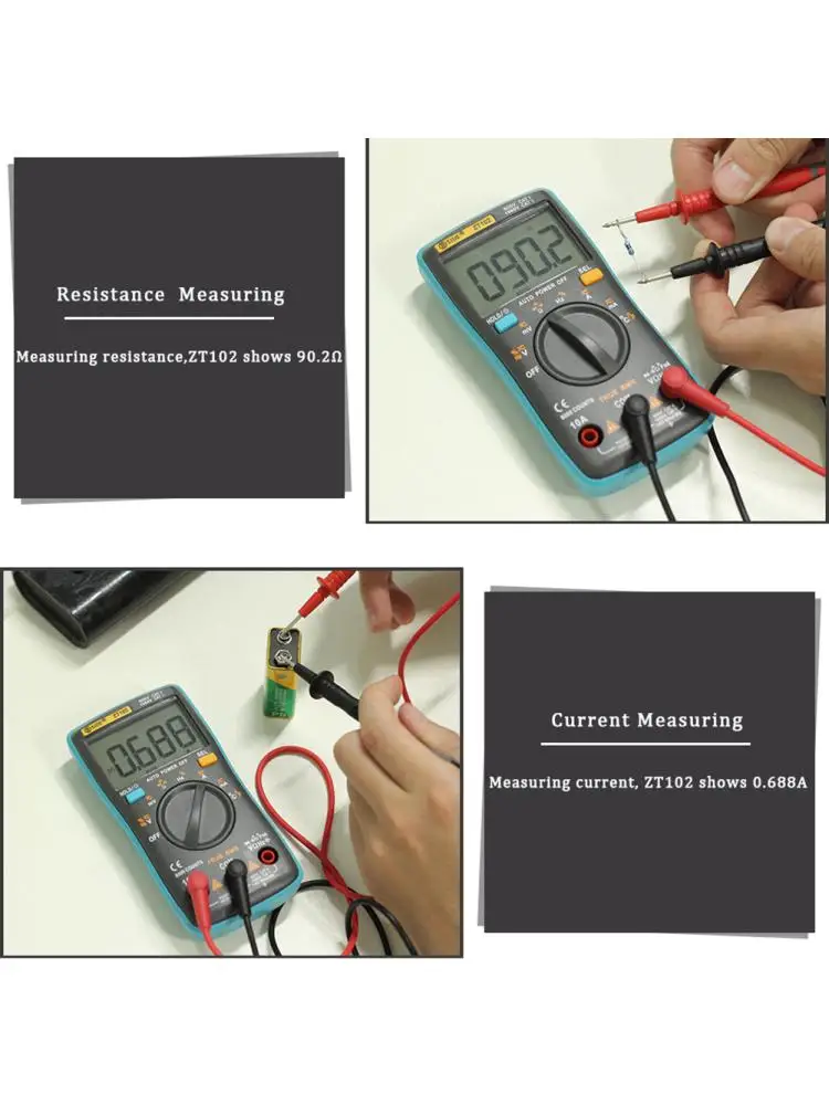 Zt102 Цифровой мультиметр высокой точности портативный домашний ЖК-дисплей Амперметр Вольтметр мультиметр Прямая поставка