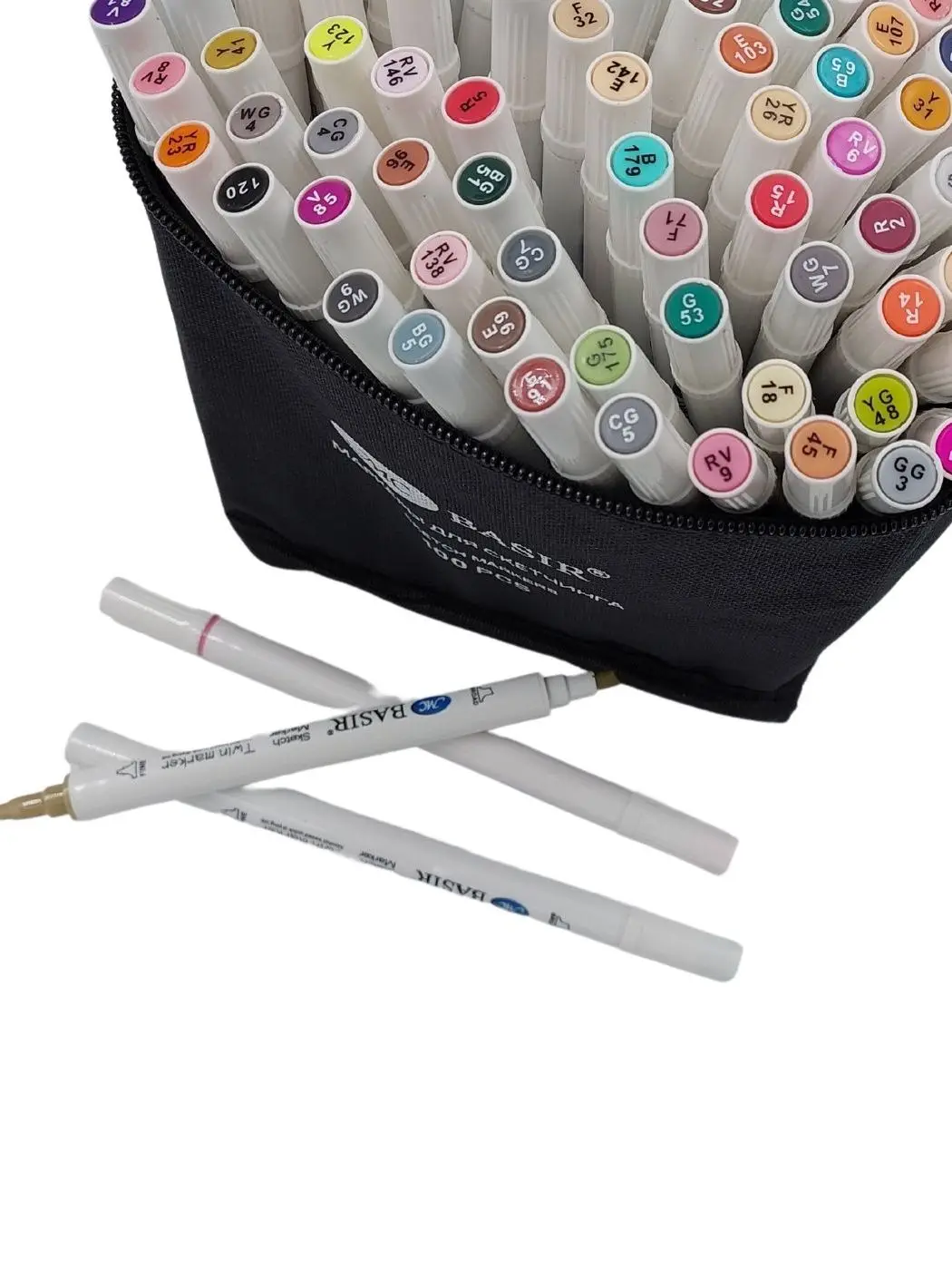 набор включает целых 100 разных цветов. Маркеры двусторонние, перманентные, набор идет в специальном