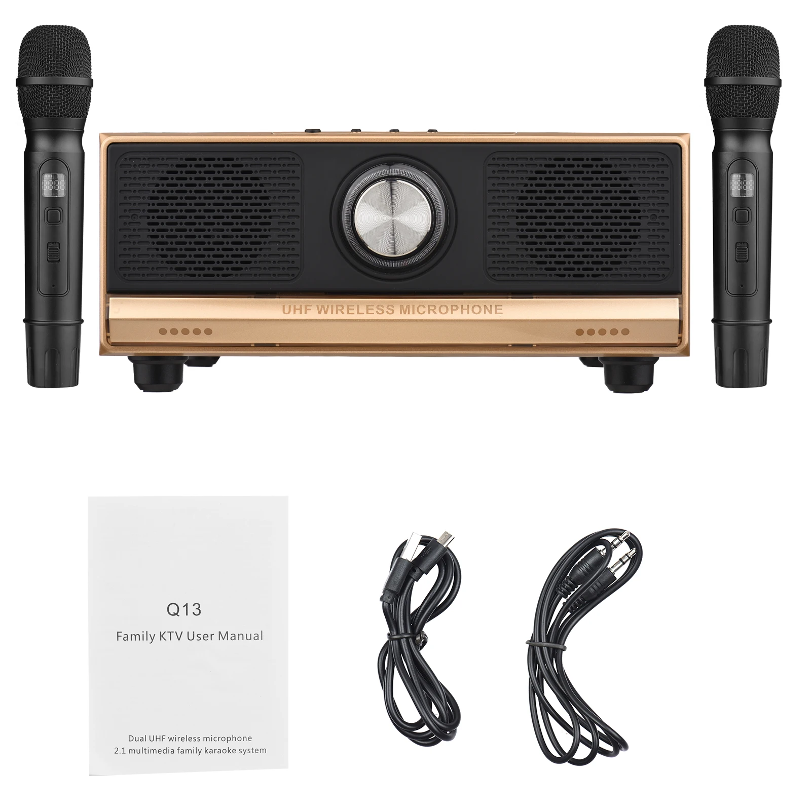 Он может работать как замечательная портативная караоке-машина с 2 портативными перезаряжаемыми беспроводными микрофонами UHF, каждый из которых имеет индивидуальный дисплей, позволяя настроить Потрясающие вечерние караоке в любое время и в любом месте.