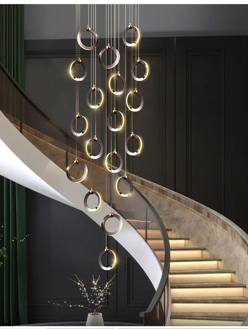 Двухуровневый спиральный светильник для лестниц черный/золотой современный светодиодный простой светильник роскошный креативный светильник ing Villa Лофт длинная Люстра для гостиной