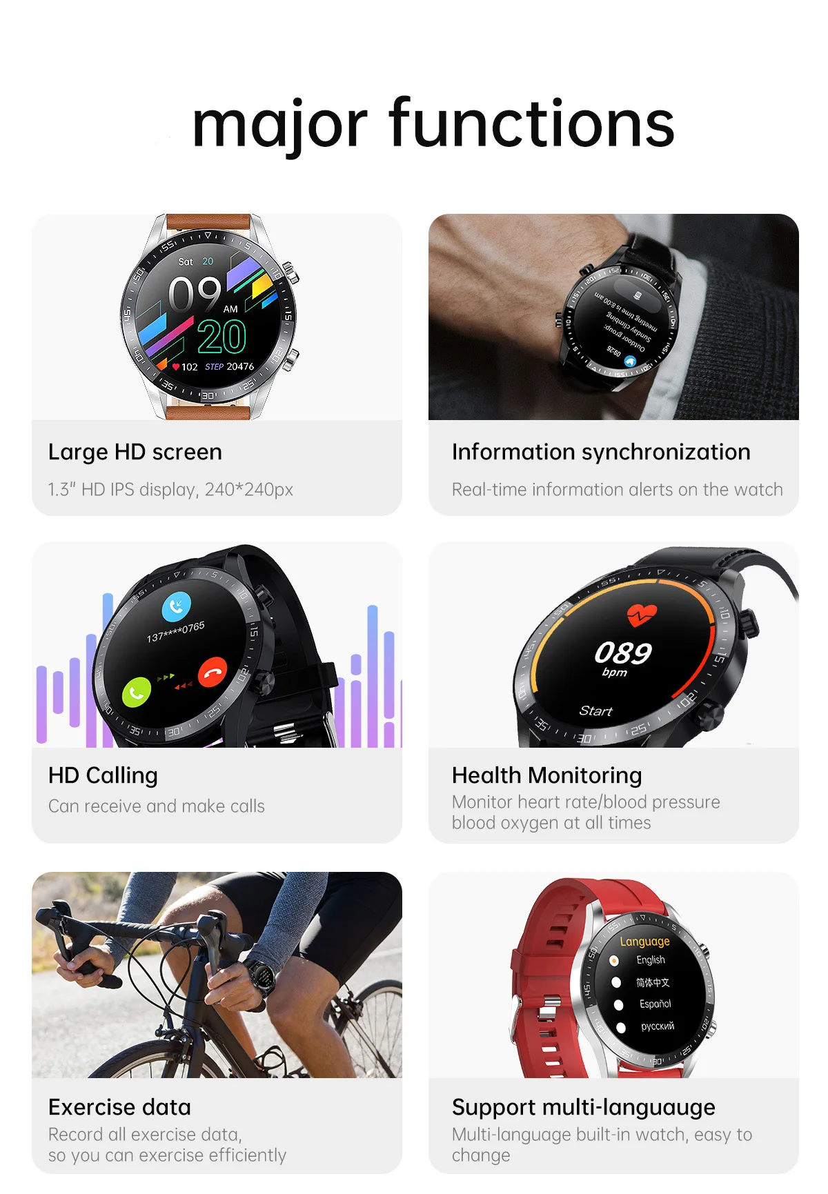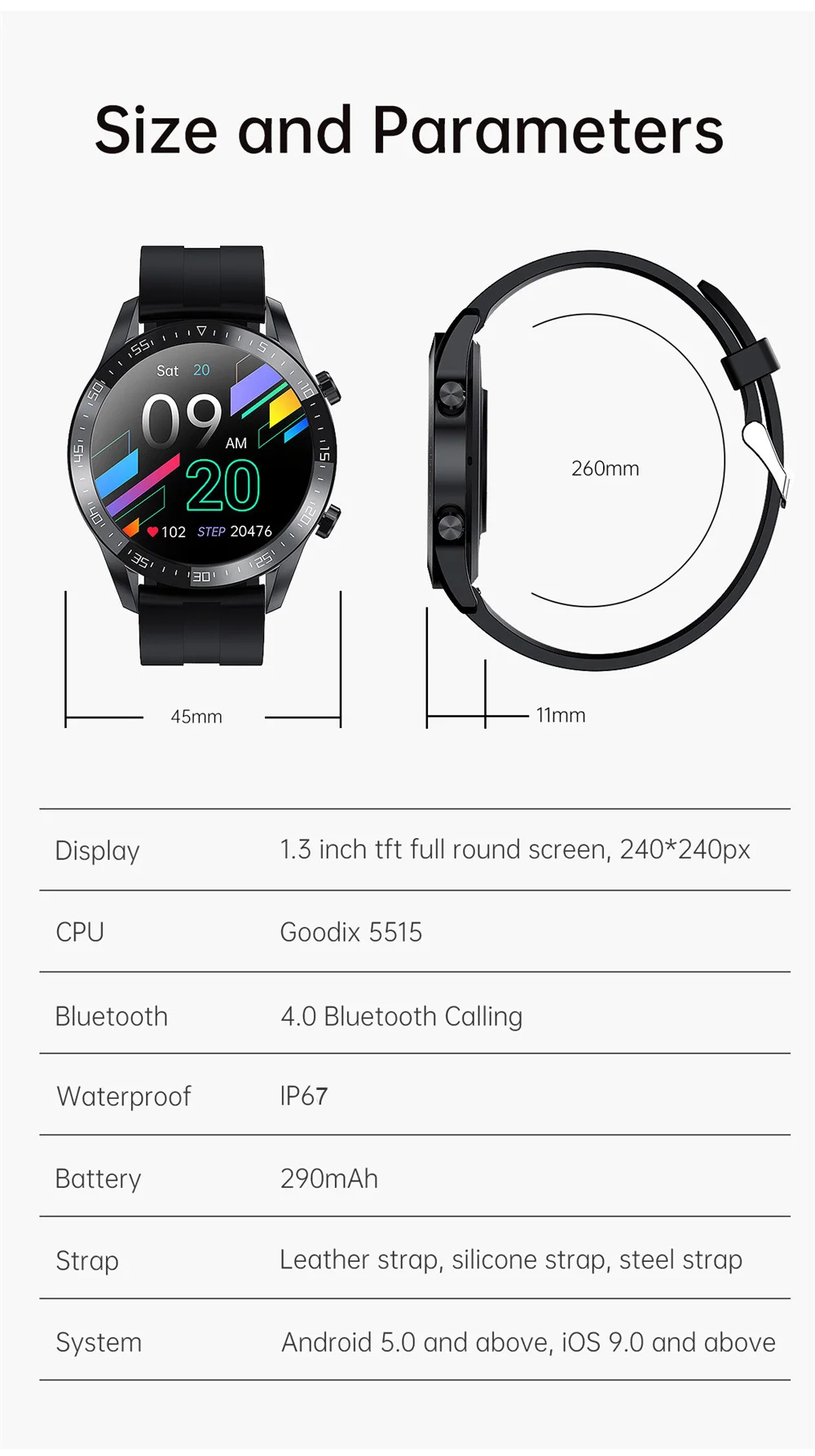 ЖК-дисплей: 1,3 дюймов full-fit высокой четкости 240*240 полного круга экран