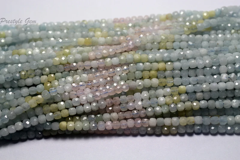 Бразилия Натуральный аквамарин 4,2 мм Гранёные с одной и плоские с другой стороны кубКаменные бусины