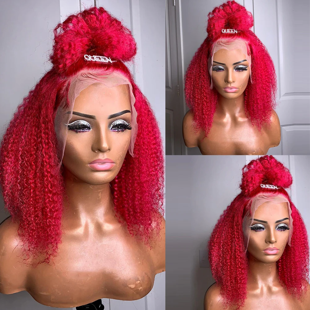 Парики из искусственных волос на кружеве Charisma, афро-кудрявые парики для женщин, ярко-розовые кудрявые парики без клея, термостойкие волосы