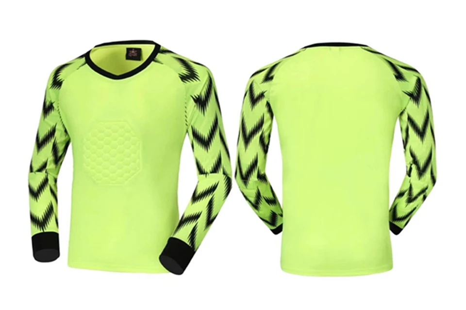 Высококачественная Персонализированная форма вратаря для футбола с профессиональной защитой от губки. Вы можете выбрать костюм из рубашки и штанов, рубашки и шорт. Если вам нужен трехкомпонентный костюм из рубашки, штанов и шорт, пожалуйста, свяжитесь со службой поддержки клиентов за дополнительную плату.