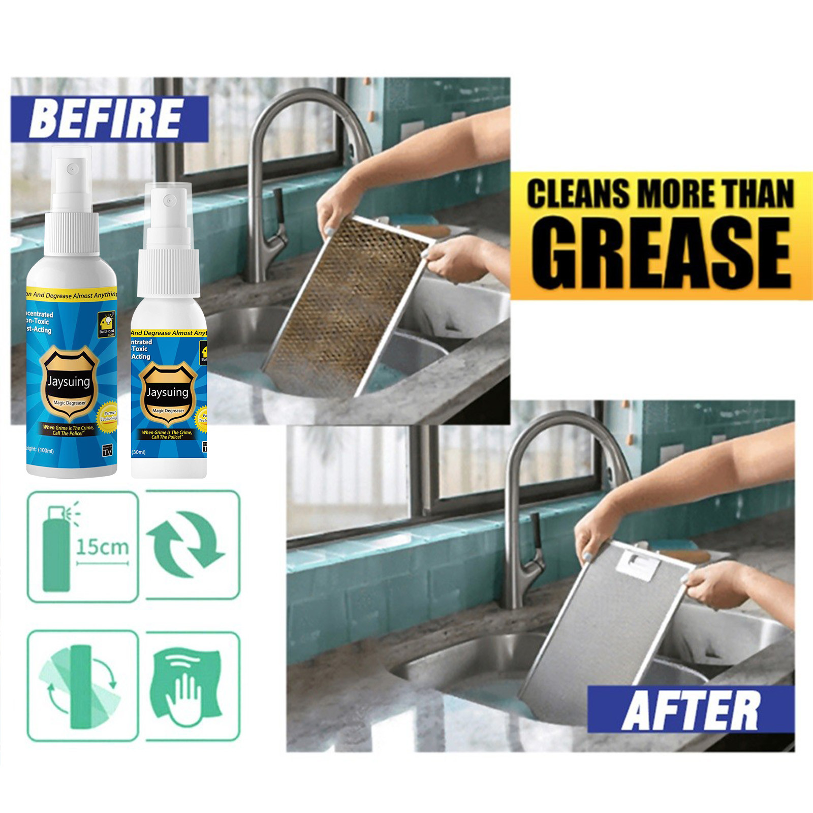 Очистите и очистите Кухонные приборы и не могу получить смазку? Это бумага для заметок на клейкой это Воняет, и это пожарная опасность. Где другие чистящие средства Сбой, обезжириватель преуспевает. Это волшебный обезжириватель и очиститель Ваша кухня остро нуждается. Его сверхконцентрированная форма Эмульгирует грязь и грязь при контакте и работает практически со всеми упрямыми Мессы-даже те, которые были испечены годами! Видя ваши кухонные приборы, кастрюли и сковородки. Это и для вас Можно использовать его снаружи на гриле для барбекю и как обезжириватель для вашего автомобиля Сделайте ваши шины. Вы даже можете использовать на дверях душа и плитках. Мощный обезжириватель и очиститель Быстрое действие Работает практически на всех упрямых сообщениях Эмульгирует грязь и грязь при контакте Используйте на кухне или на улице на гриле или машине для барбекю Работает на душевых дверях и плитках A:30 мл, B:100 млВ комплект входит: