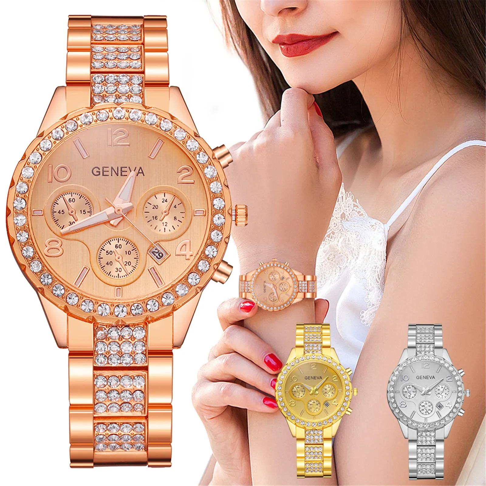 Роскошные полностью алмазные стальные полосы Ms кварцевые аналоговые часы с бриллиантами