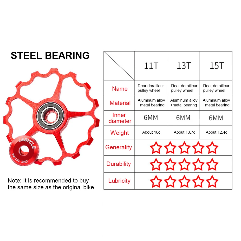5,1 мм 11T/13T/15T велосипед задний переключатель шкив опорное Сталь подшипник велосипед Алюминий сплав направляющий ролик Запчасти для горного и дорожного велосипеда