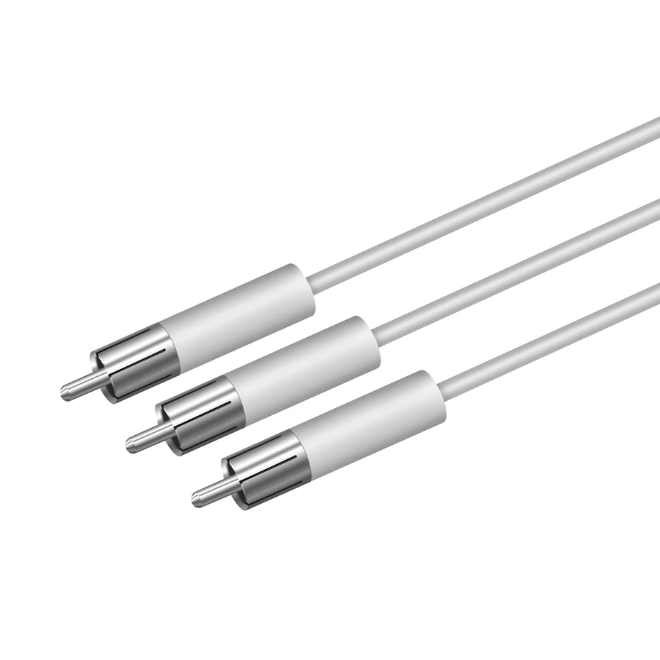 3 Standard RCA ""R-AUDIO-L, VIDEO"" (red-white-yellow) male connectors.