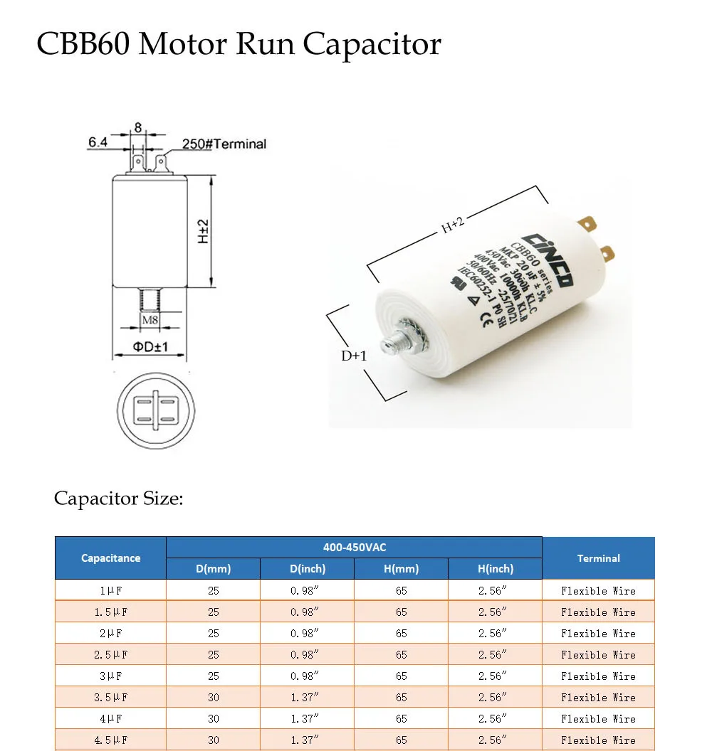 > 2 шт./лот CBB60 двигатель запуск конденсатора провод ведущий