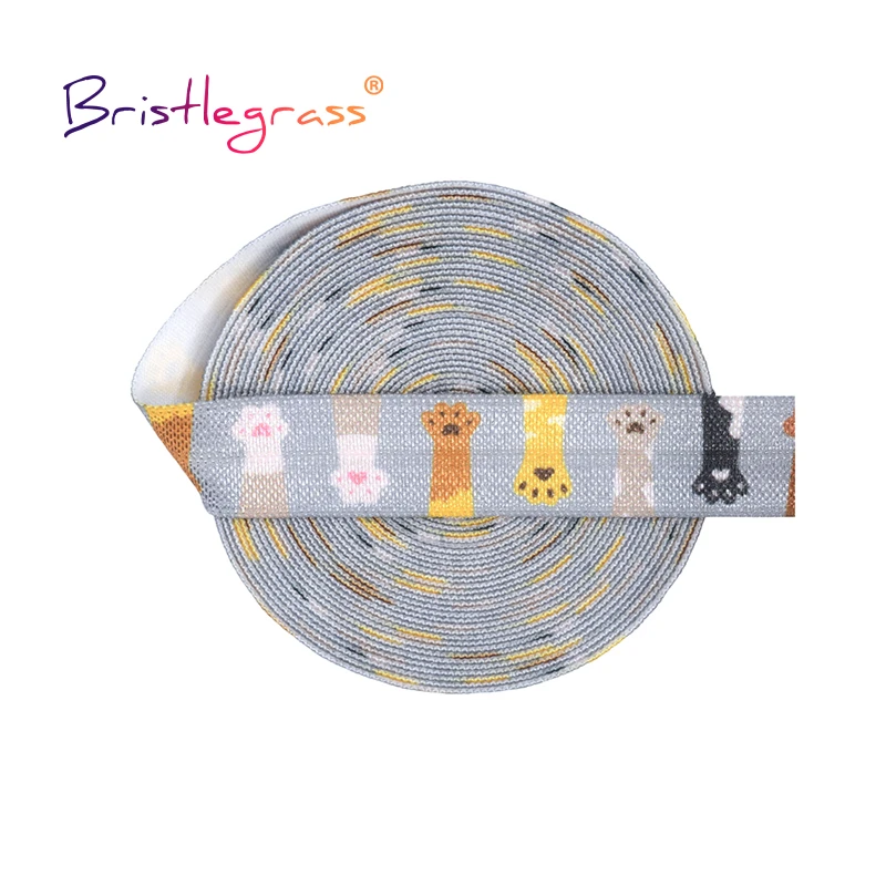 Щетина трава 2 5 10 ярдов 5/8 "15 мм кошка лапа рисунок питомца раскладной эластичный враг спандекс атласная лента галстук для волос платье с повязкой швейная отделка