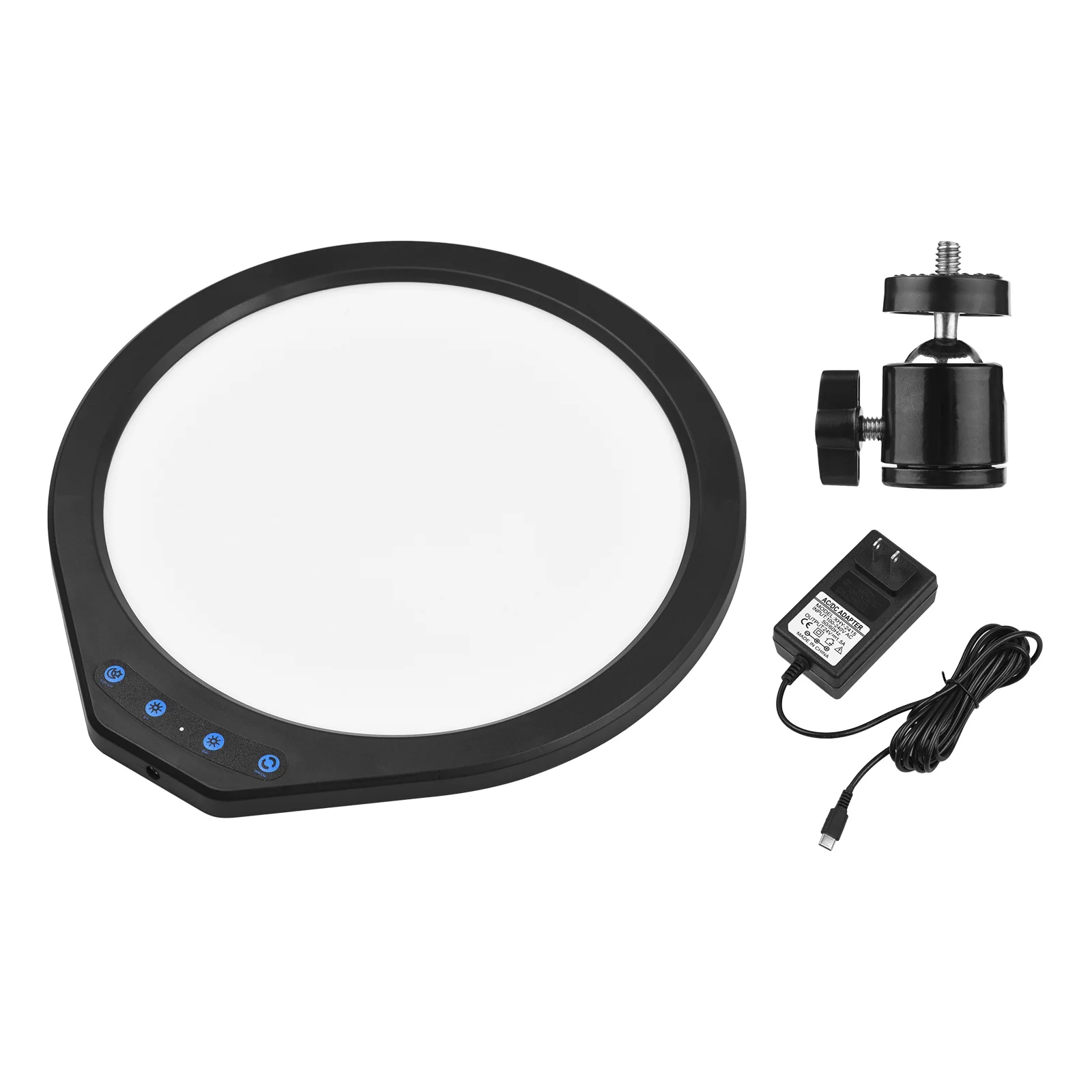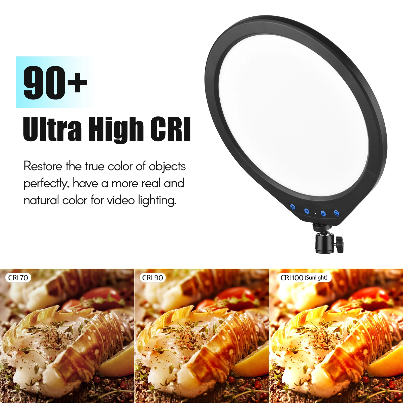 【Round Shaped LED Panel Light】Round shaped design, with large white panel to make the light more even and softer; adopts 224pcs high-quality LED beads, high brightness and 90+ high color rendering, very suitable for vlog, live streaming, portrait photography, etc.