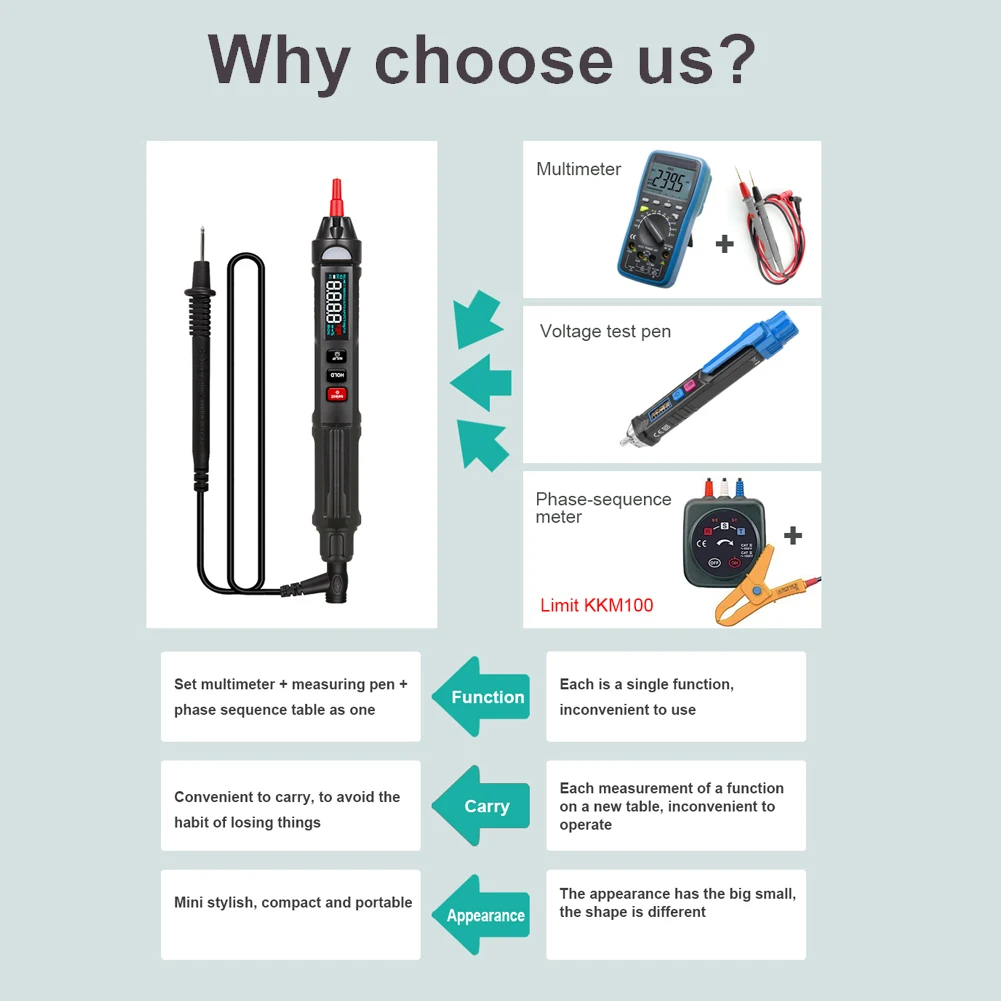 Автоматическое выключение и звуковая сигнализация-мультиметр ручки имеет функцию автоматического отключения, которая автоматически отключится, если нет операции для минут, низкое энергопотребление. Звуковая + светильник сигнализация облегчает измерение.
