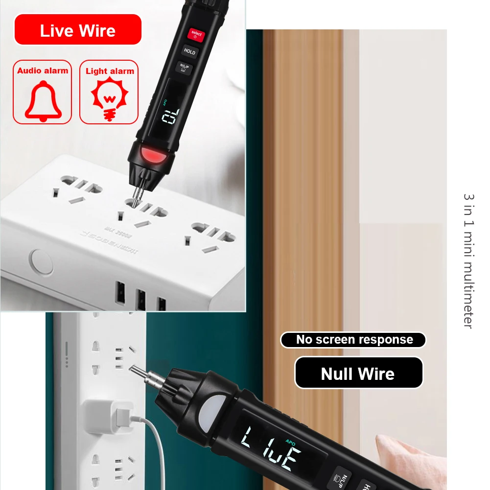 ANENG A3003 4000 отсчетов Ручка Тип Цифровой мультиметр с NCV, AC/DC вольтметр, Омметр, сопротивление, емкость, частота и Тест линии, цифровой мультиметр-ручка также с функцией EF и функцией включения-выключения Buzzer Detection поддерживает Удержание данных. Большой ЖК-экран с поддержкой функции автоматического отключения для энергосбережения; Buit-in flash светильник + звуковой и светильник, более удобный тест и чтение.