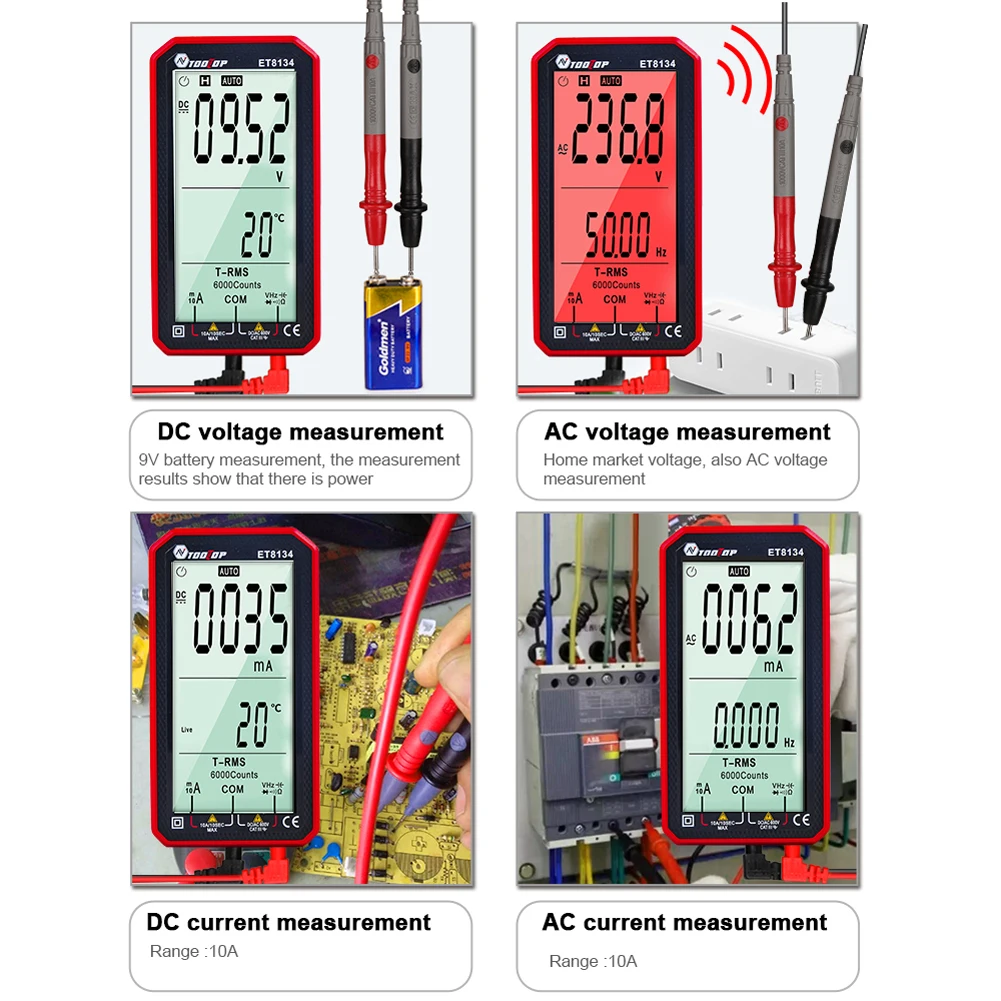 Бесконтактное измерение-цифровой мультиметр поддерживает Бесконтактное Обнаружение напряжения NCV и может различать нулевую линию и пожарный провод, чтобы избежать риска поражения электрическим током. Безопасный и надежный.