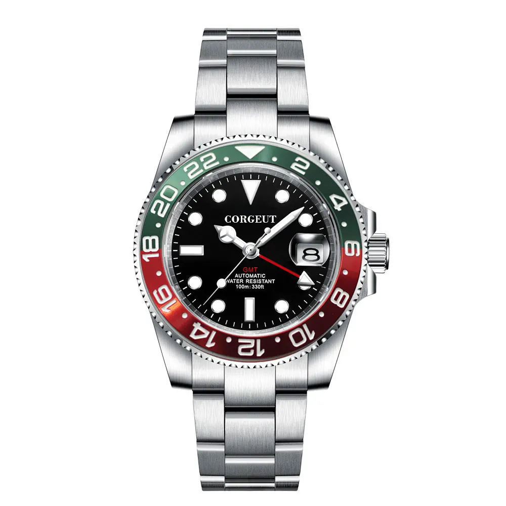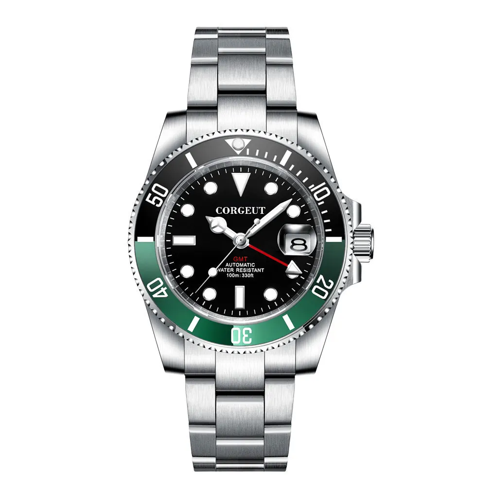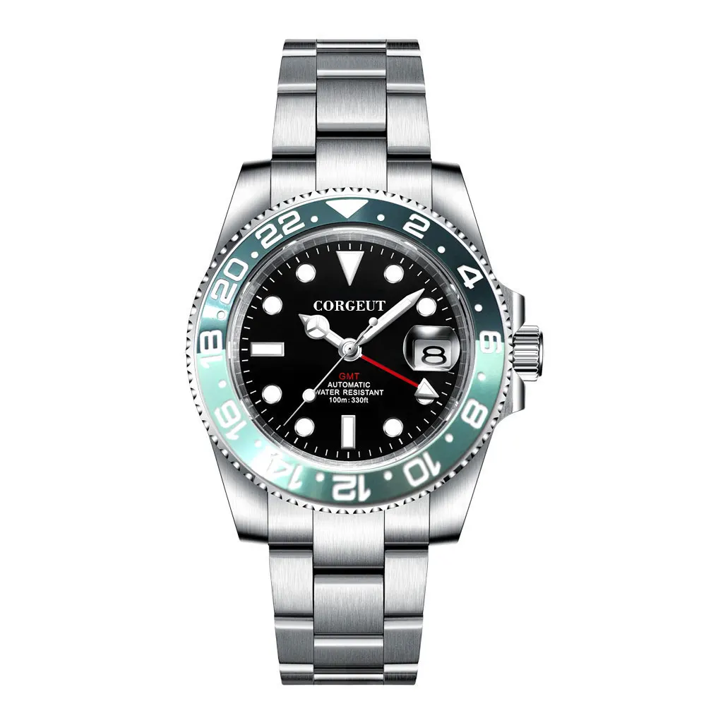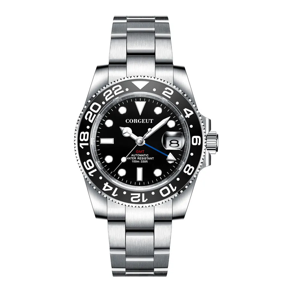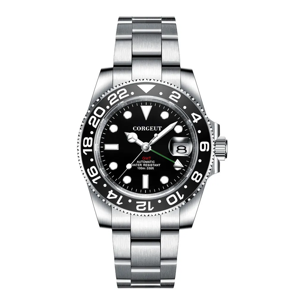 Светящиеся makrs, светящиеся стрелки, 10 АТМ, однонаправленный керамический ободок, GMT