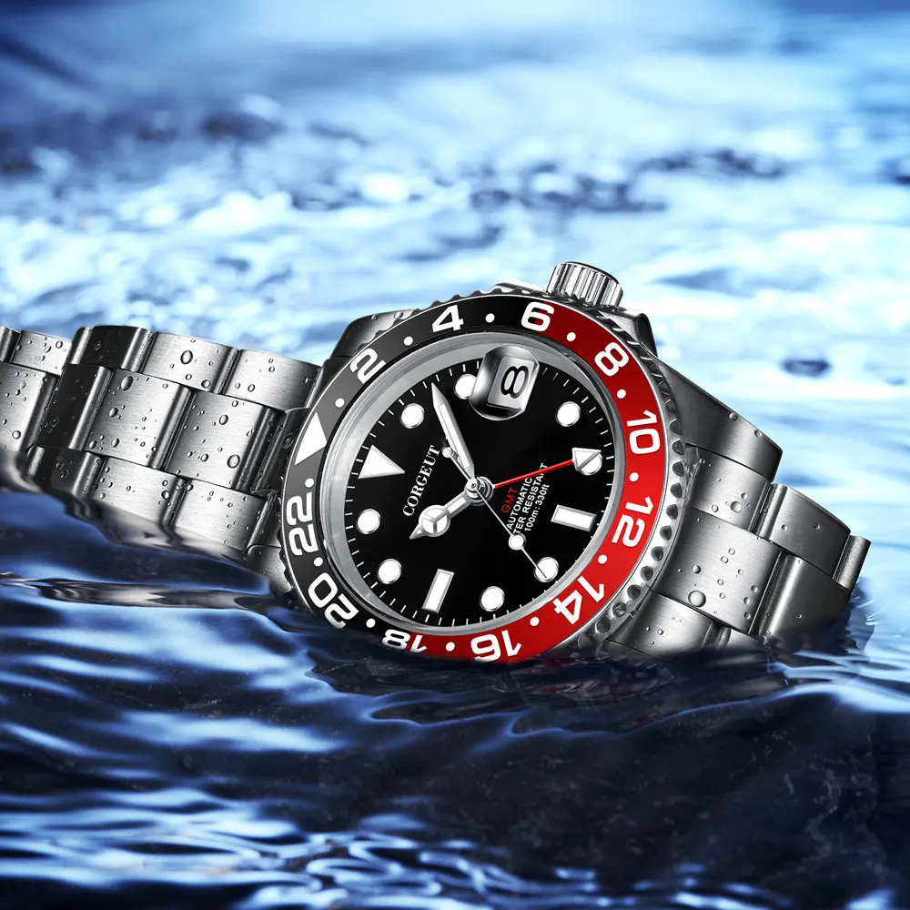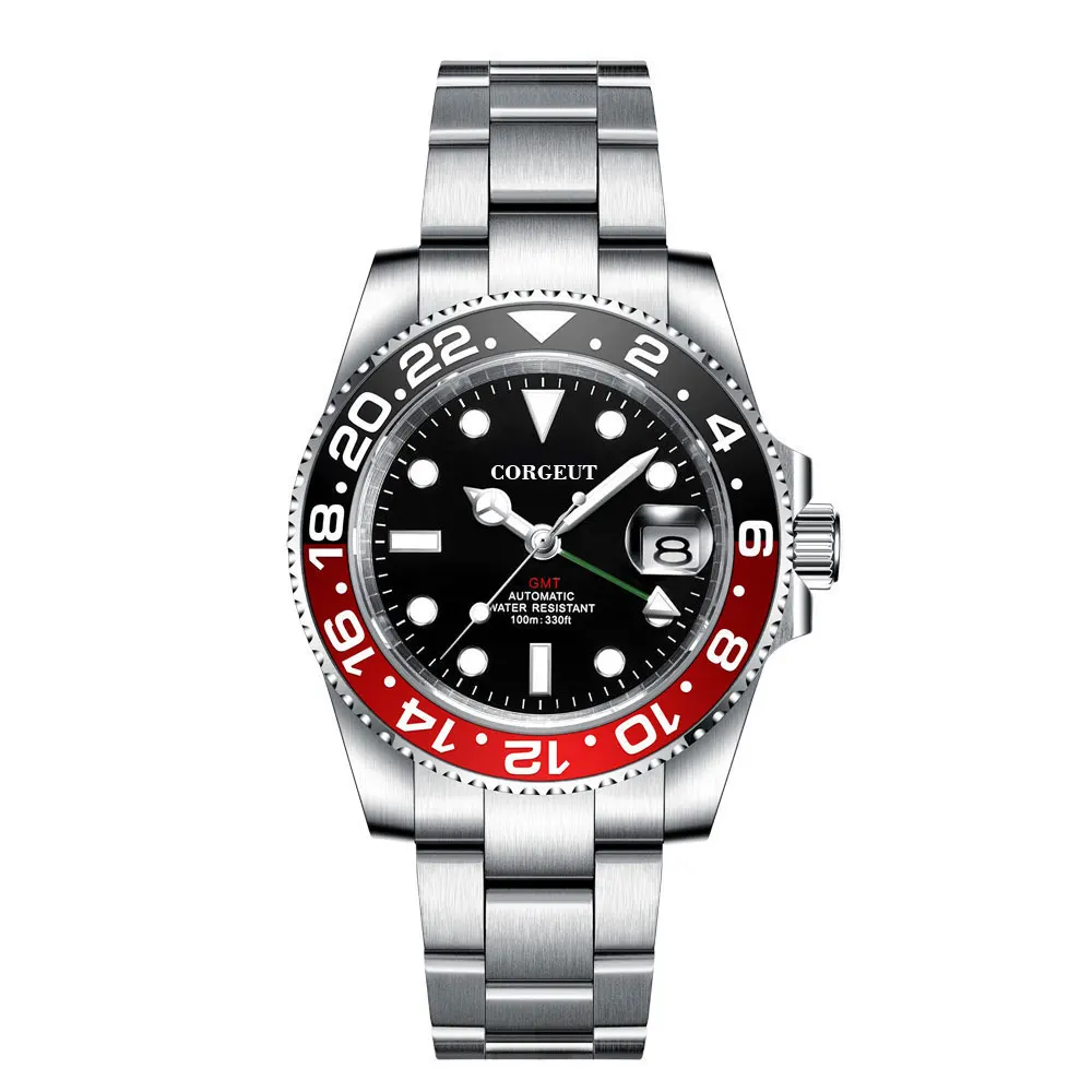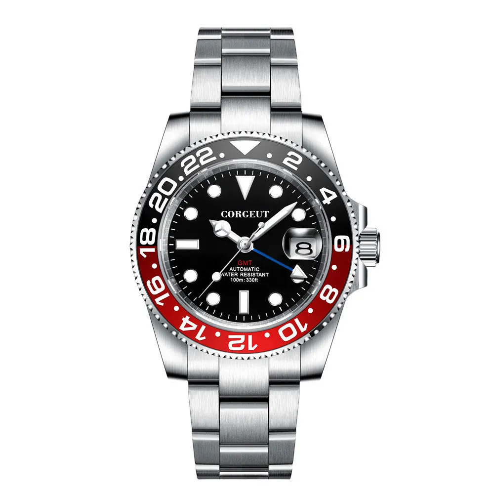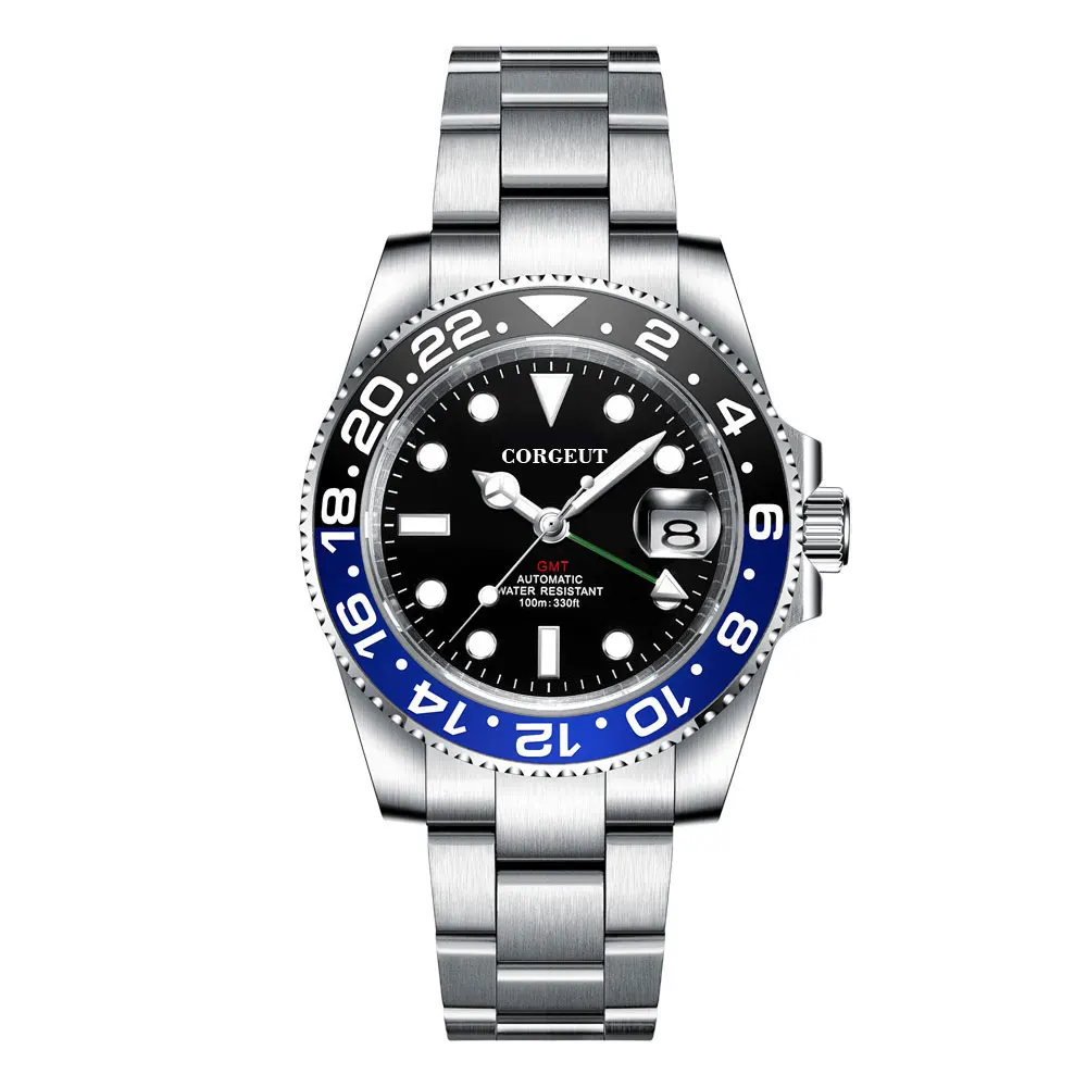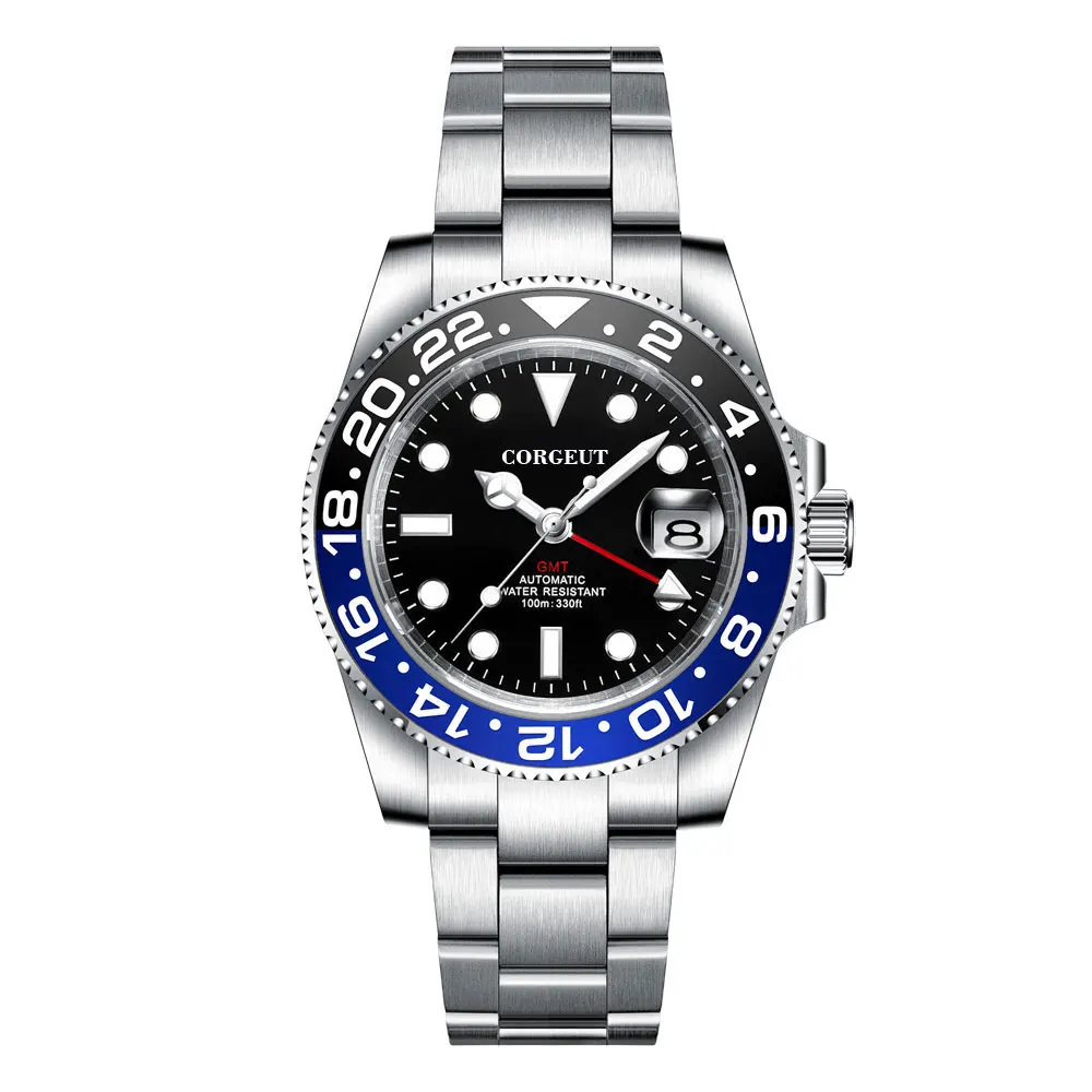 Светящиеся makrs, светящиеся стрелки, 10 АТМ, однонаправленный керамический ободок, GMT