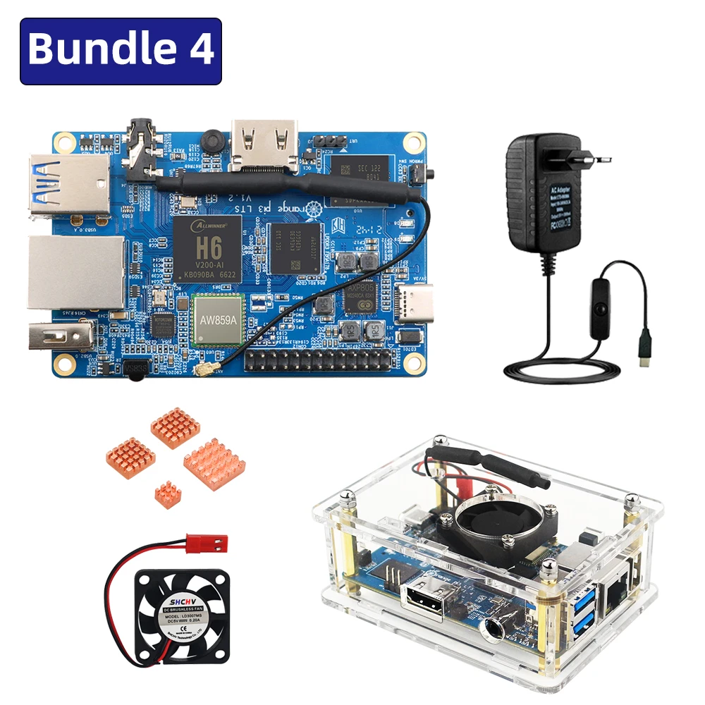 Оранжевый Pi 3 LTS 2G RAM 8G EMMC WIFI + BT5.0 AllWinner H6 SoC дополнительный акриловый чехол адаптер питания теплоотвод вентилятор HDMI-comaptible