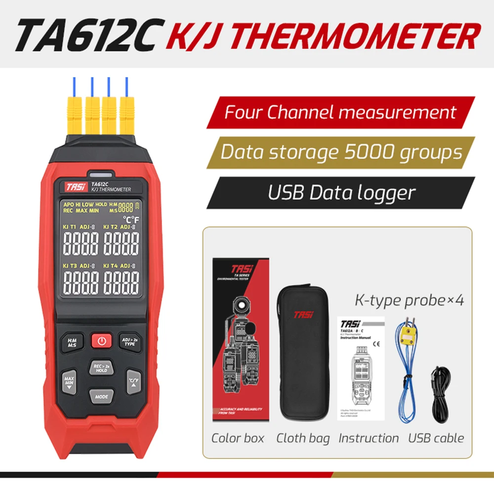 Портативный цифровой термометр термопары типа K/ J с высокой точностью, одноканальный (A)/Двухканальный (B)/четырехканальный (C) для опции.