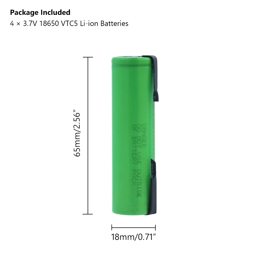 Аккумуляторная батарея VTC5 18650С вкладками для пайки никеля, Максимальный ток до 30А.