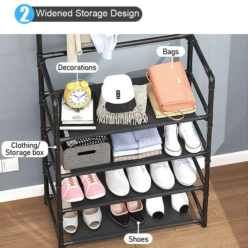 【 3 в 1 дизайн: 8 крючков, 5 ярусная стойка для обуви, поможет вам хорошо организовать вашу семью. Все крючки подвижные, так что вы можете настроить их для лучшего положения, которое вам нравится. Легко организовать различную одежду, кепки, сумки и т. д.
