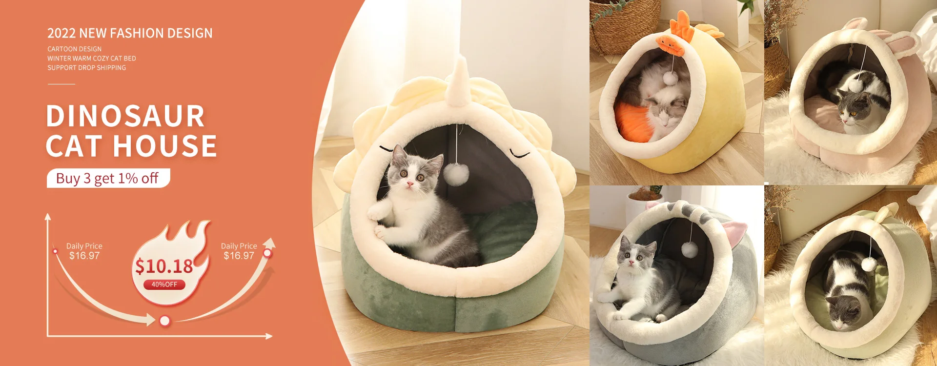 1. Милый модный домик для домашних животных с кошачьими ушками