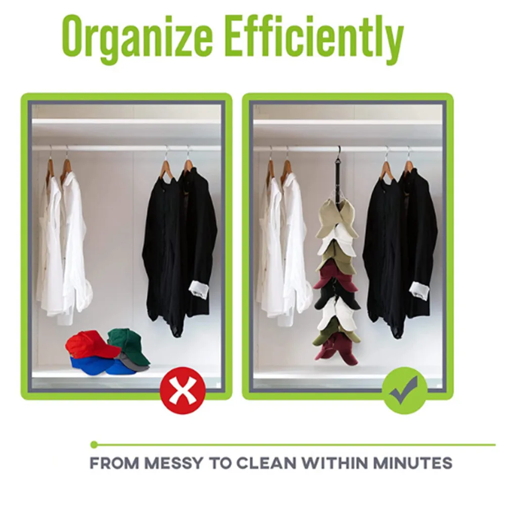 Использование: может вместить 16 шляп. Вы можете повесить его в шкафу или за дверью. Преимущества по сравнению с вешалкой для шляпы: легко зажимать шляпу и забрать шляпу сверху; Держите шляпу в шкафу чистой и не покрытой пылью; подходит для всех головных уборов, не только регулируемые бейсболки; Подходит для носков, других предметов, таких как перчатки.