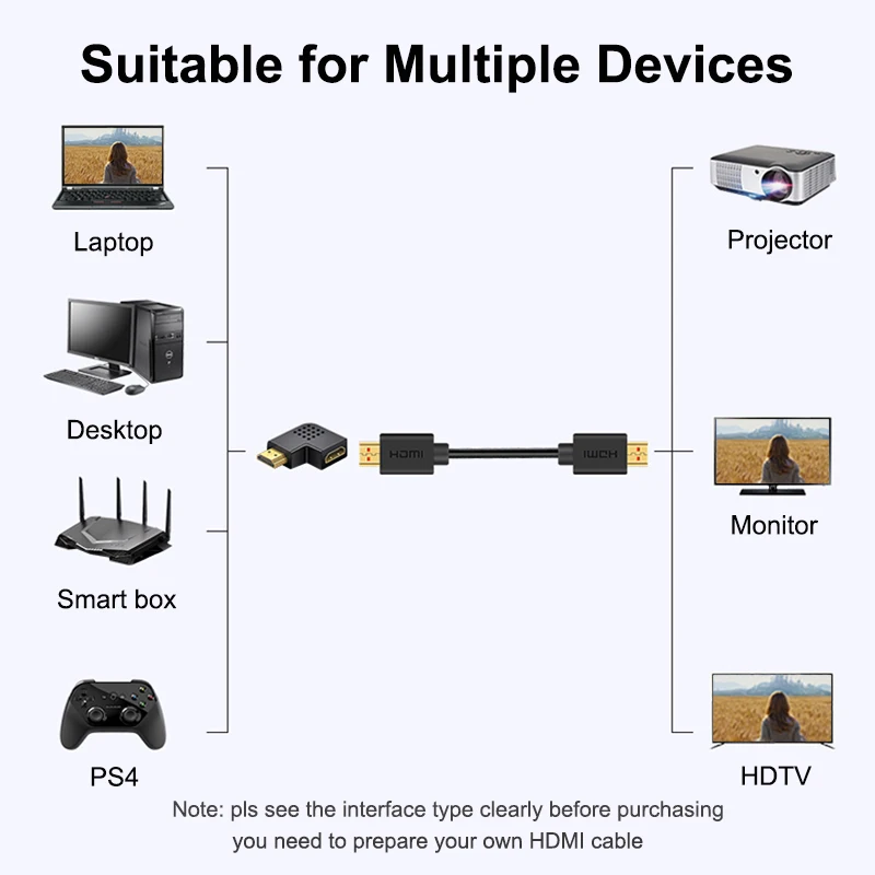 HDMI адаптер 90 360 градусов правый угол 4K HDMI удлинитель HDMI Штекерный разъем для HDTV PS4 HDMI конвертер
