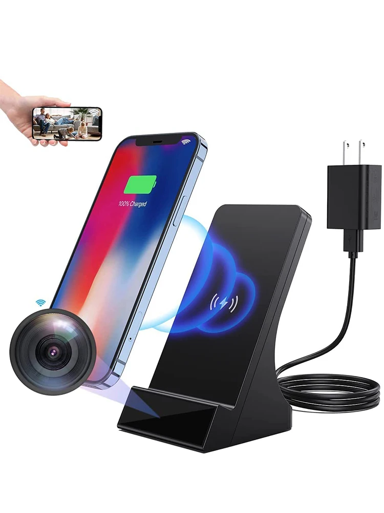 С невидимым объективом поддержка: выглядит как Беспроводное зарядное устройство для телефона для безопасности видеосъемки