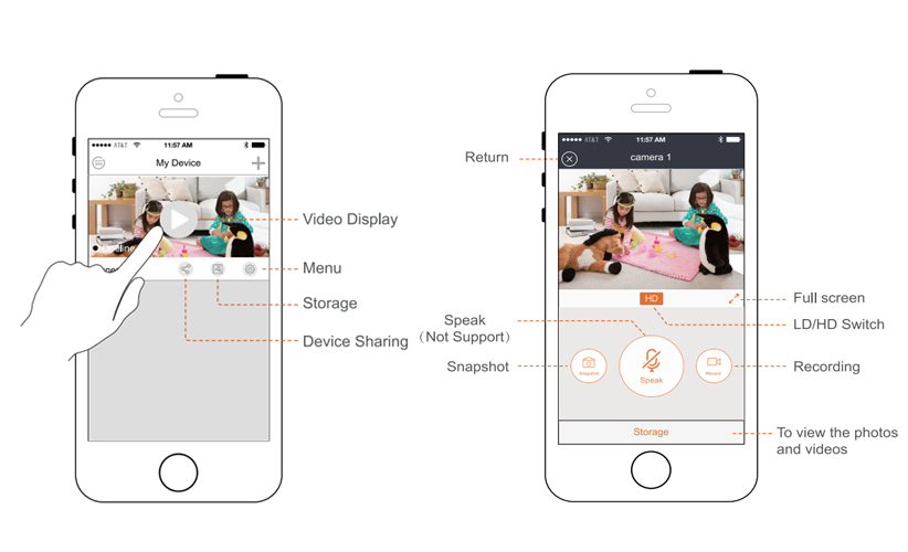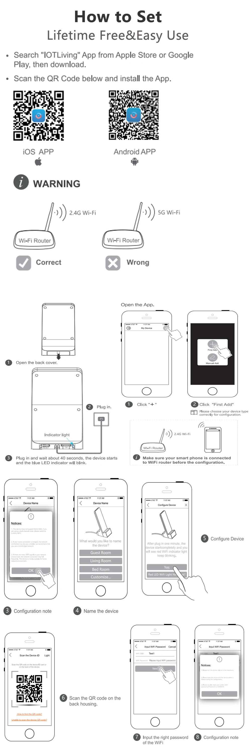 Шаг 2. Откройте приложение и нажмите «сначала добавить» и выберите устройствоШаг 3. Сканирование qr-кода (проверьте корпус устройства)Шаг 4. Введите пароль wifiШаг 5. Включите громкость телефона до максимальной и закройте камеруB: Wi-Fi + горячая точка