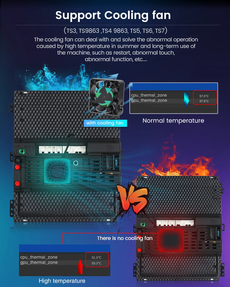 Полностью алюминиевый корпус, встроенный вентилятор охлаждения, лучшее отведение тепла, может эффективно улучшить скорость работы Дополнительные аксессуары: видеовыход, монитор давления в шинах, DAB + цифровое радио, OBD2