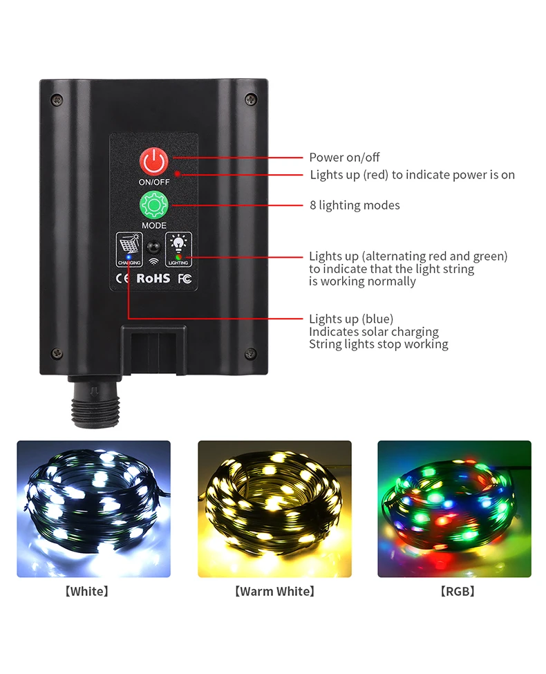 【Почему выбрать эту солнечную лампу 】: более длительное время работы, супер яркие светодиодные гирлянды 24 В, водонепроницаемость IP65, высококачественный гибкий провод ПК, технология быстрой зарядки. Новая солнечная панель питания 4,5 V/250mA, мощность зарядки-3 раза с другими панели солнечных батарей.