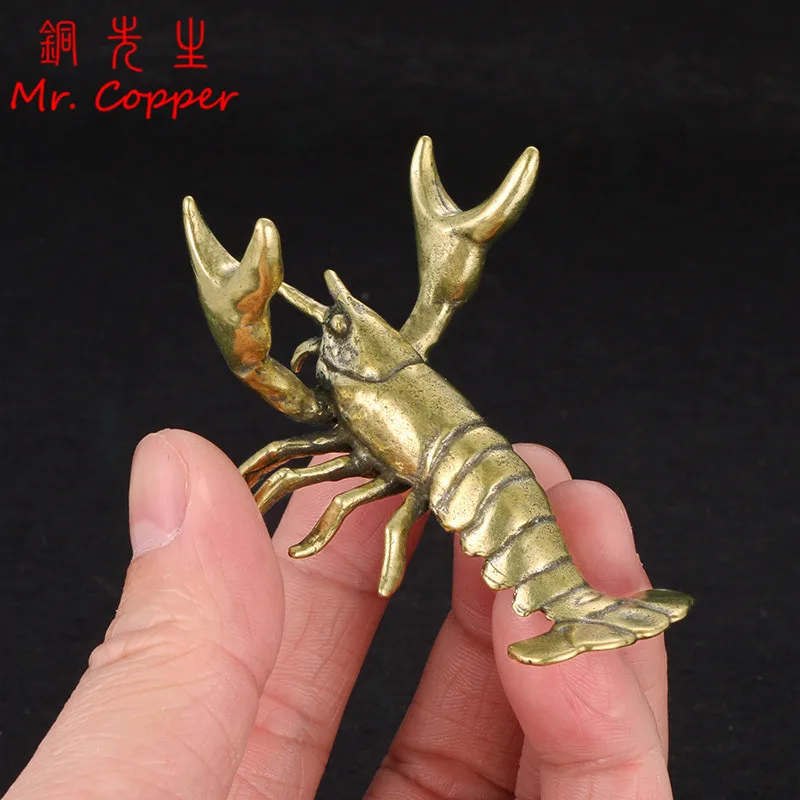 Solid Brass Crayfish Ornament Vintage Animal Pen Holder Desktop Decorations Crafts Collections Lobster Figurines Miniatures Pets