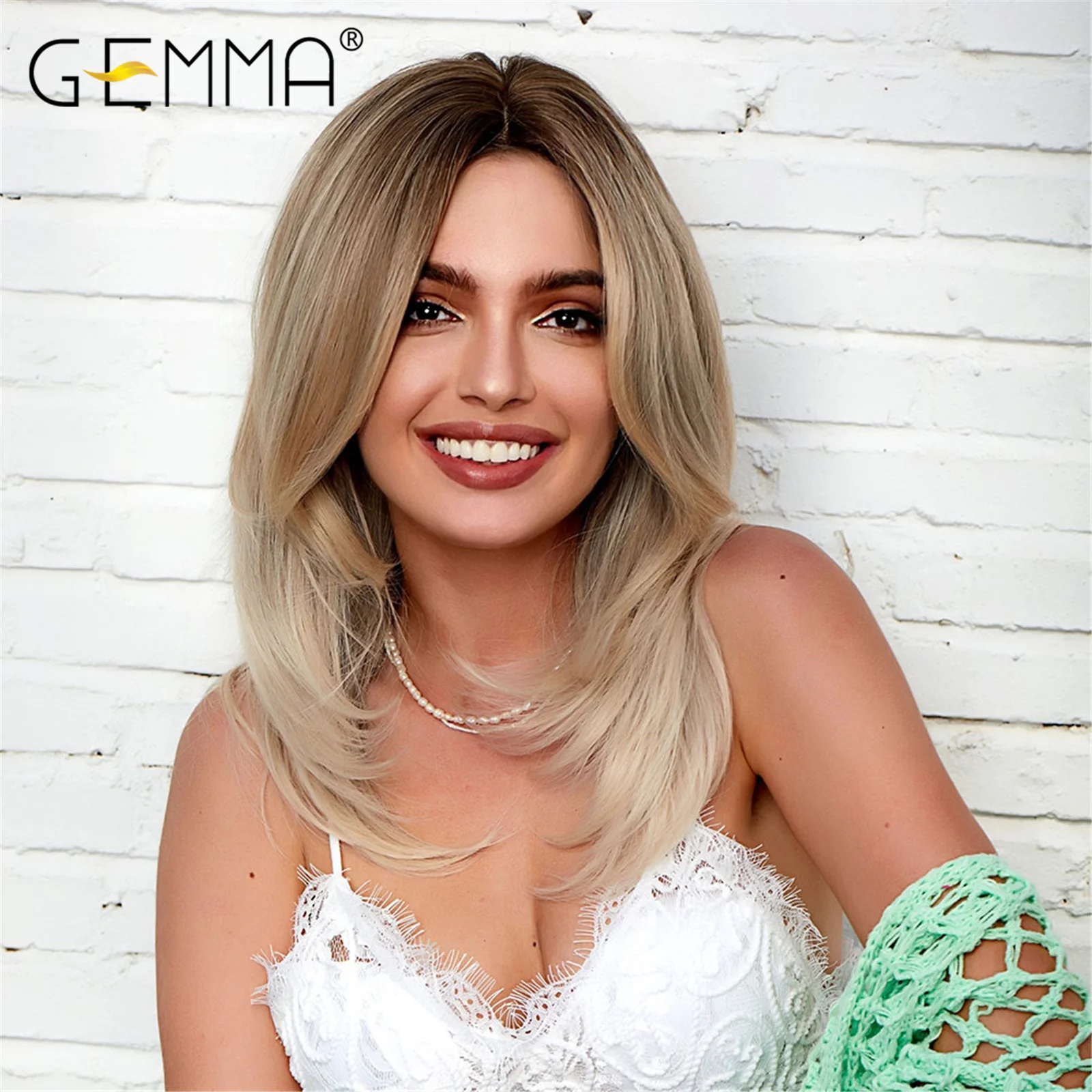 Парик GEMMA с длинной боковой частью, синтетический парик пепельно-серого цвета, натуральные волнистые парики для женщин, повседневный Омбре, серые темные корни, многослойные волосы, термостойкие