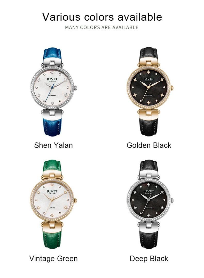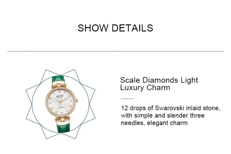 JUVET Elegant Women Watches Luxury Sapphire Crystal Dial Diamond Dress Female Clock Waterproof Quartz Ladies Wristwatch