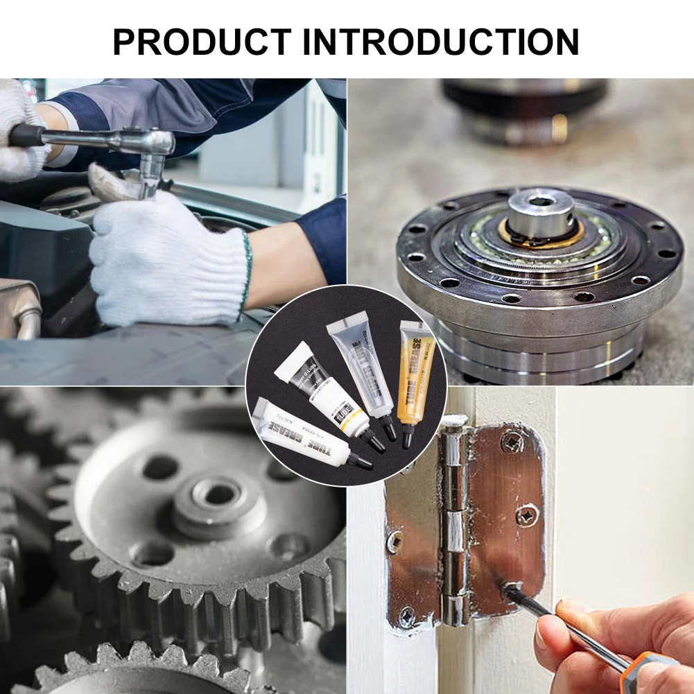 4 типа смазки на выбор. Подшипник # предназначен для передач, велосипедных цепей, подшипников для уменьшения шума и защиты от ржавчины; Принтер # специализируется на принтерах, копировальных машинах, сканерах; смазка # O-Ring является водонепроницаемой и герметичной, предназначена для уплотнительного кольца на кран, счетчик воды, оборудование для дайвинга, игрушки, двигатели, электроника; # General-диметиловая силиконовая смазка.