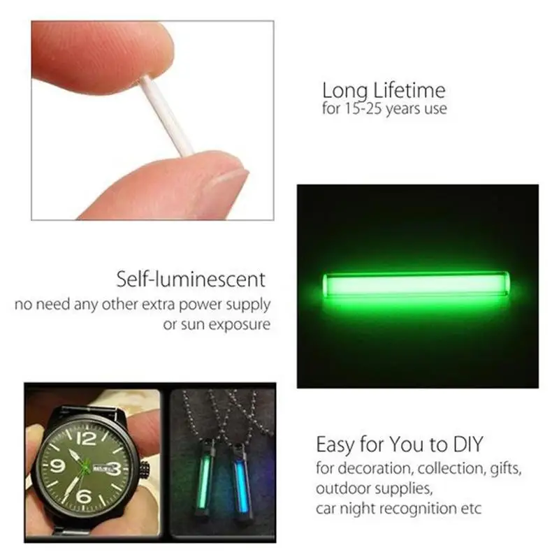 -Серебристая трубка заряжается, чтобы излучать светильник, можно использовать фиолетовую лампу, солнечный светильник, мобильный телефон, флэш-светильник, настольную лампу и другую зарядку от облучения, яркость от остановки зарядки начала постепенно снижаться.