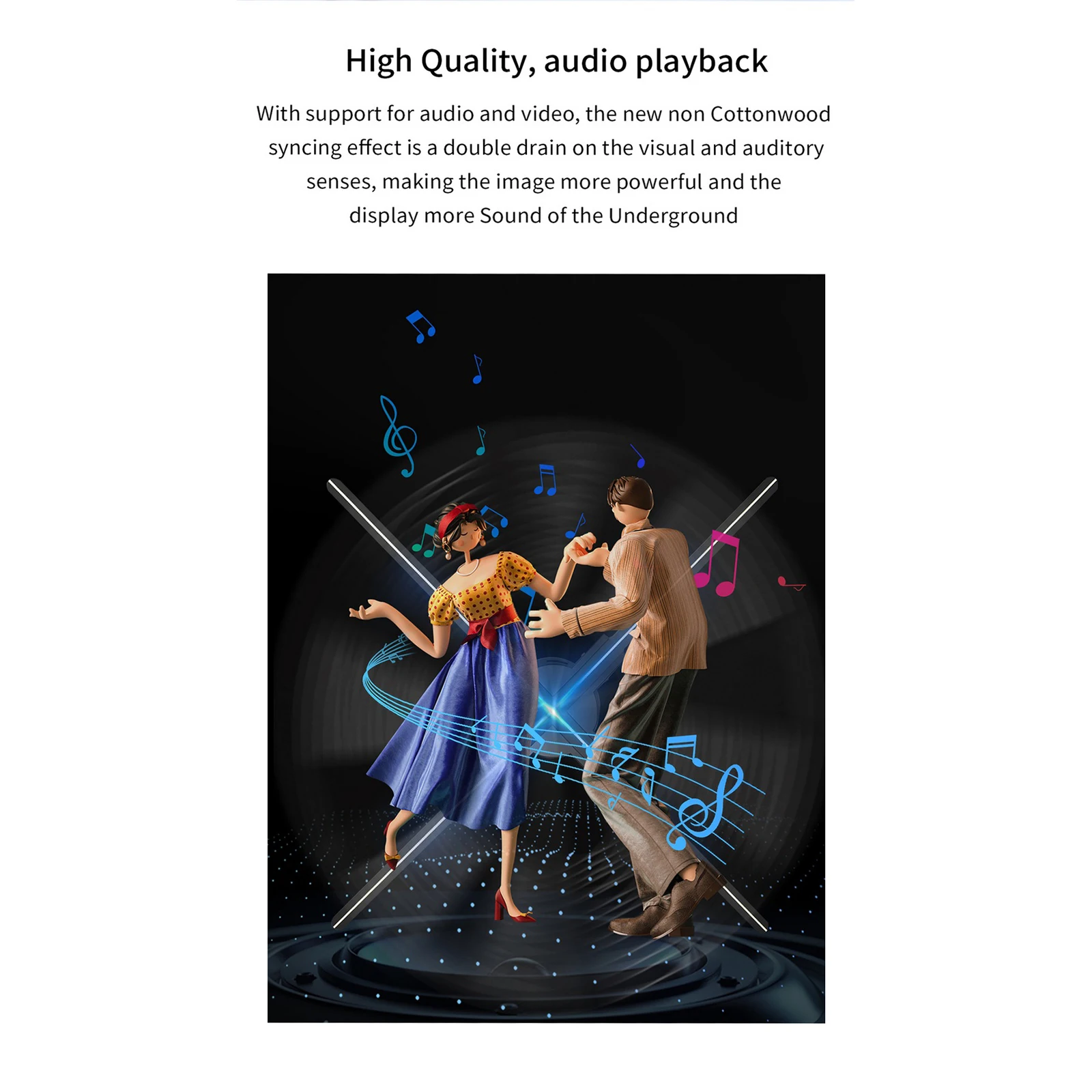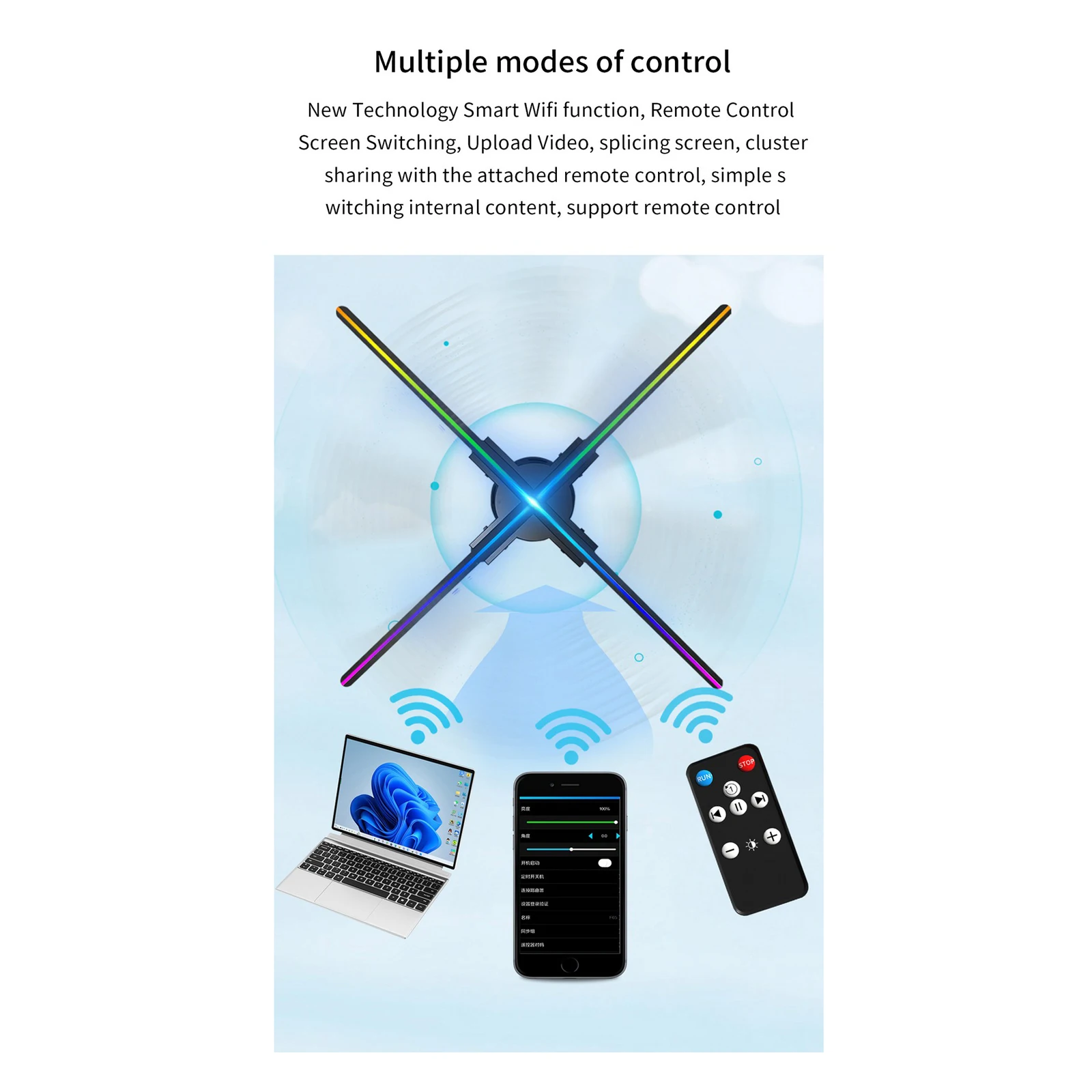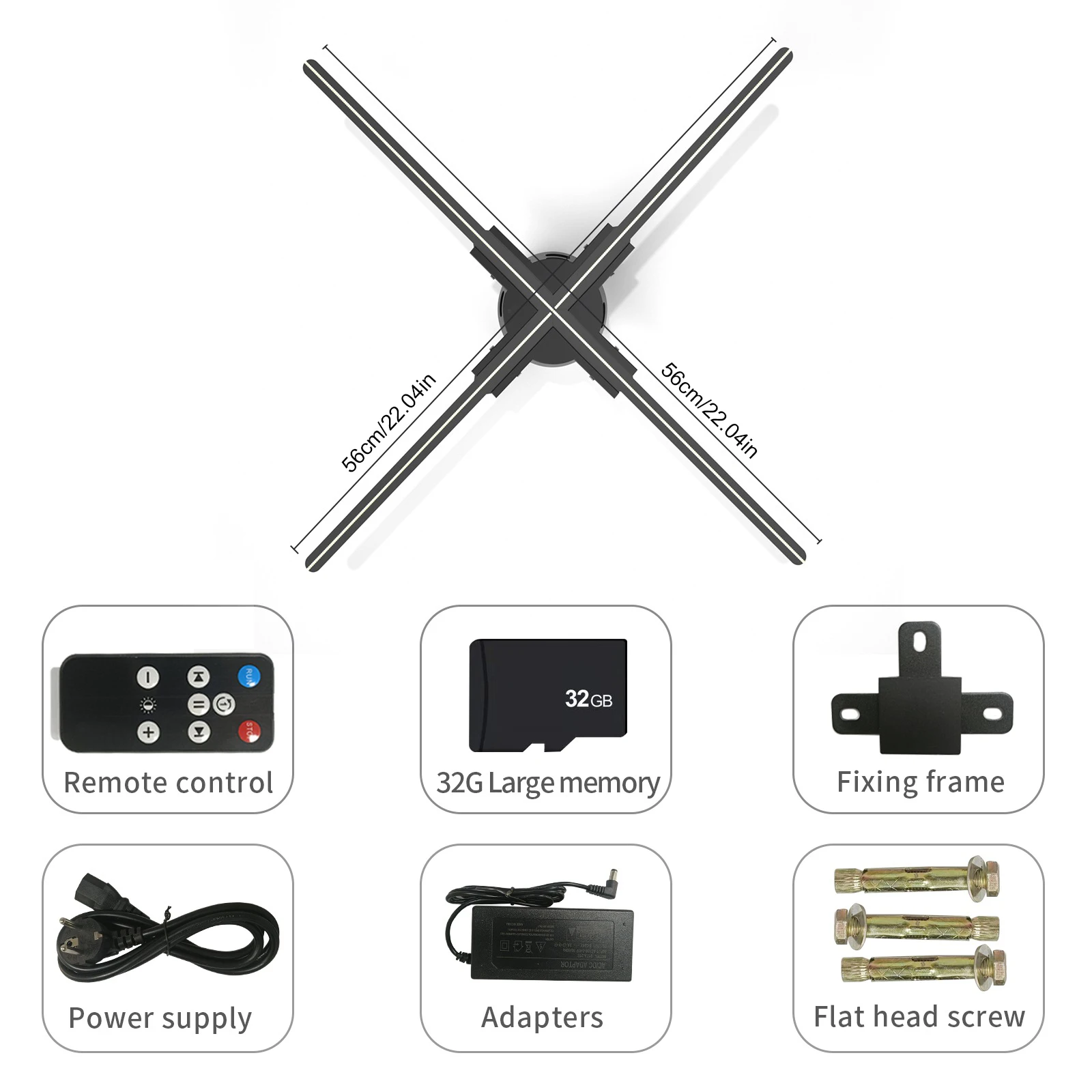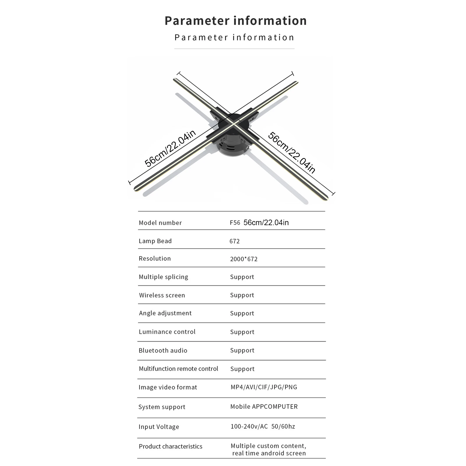 1. Новый Усовершенствованный F56: 22,04 дюймовый 3D светодиодный голографический проектор лидер, четырехосевой светильник, конструкция вращения бара + Высокое разрешение (2000*672) + Мощный Wi-Fi + загрузка приложений + высокая скорость передачи + 672 высококачественные светодиодный лампы обеспечивают новое модернизированное приложение и различные индивидуальные производственные материалы обеспечивают пользователям мощный опыт работы