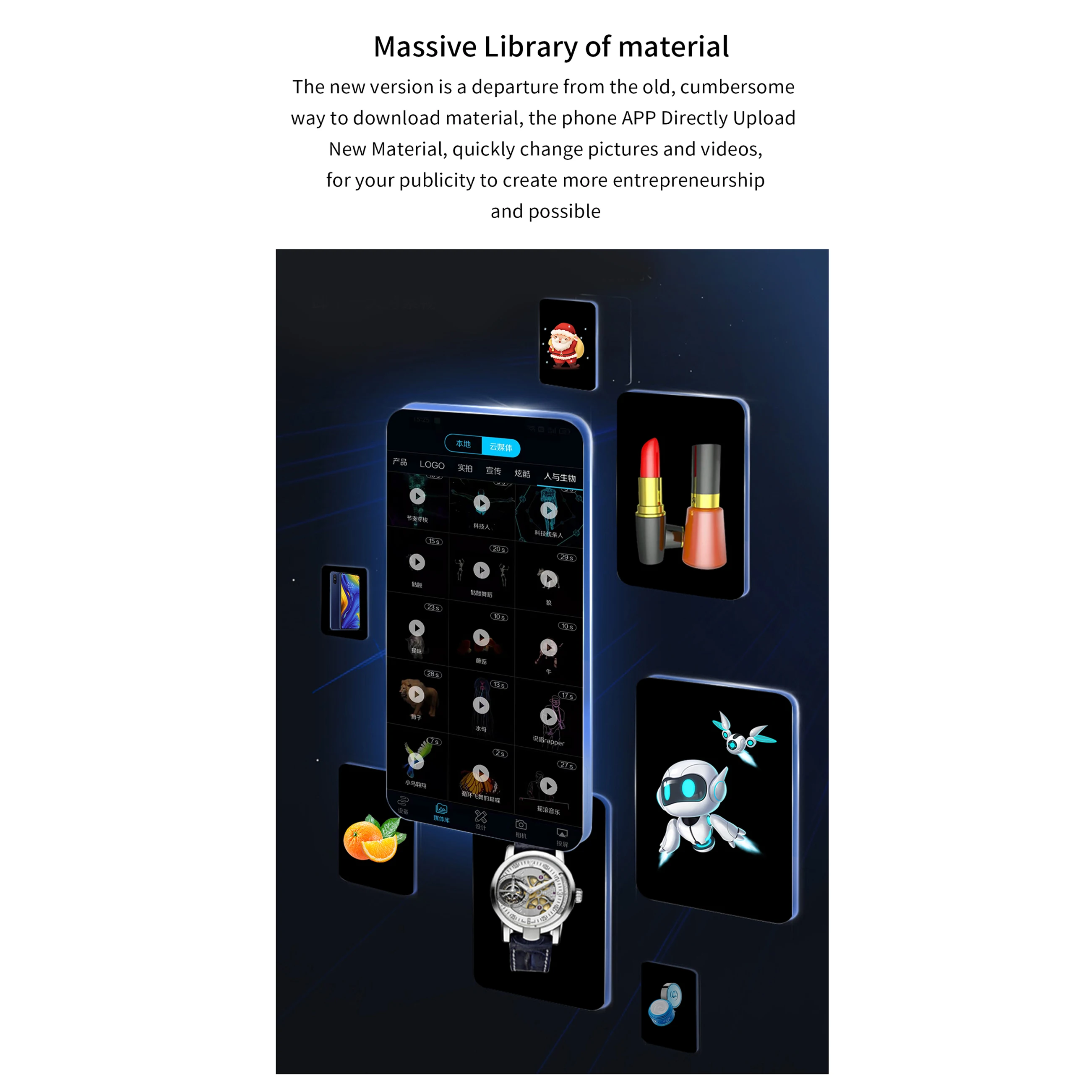 3D голографическая рекламная машина использует принцип устойчивости человеческого тела технологии видения (POV) и реализует 3D голографический визуальный эффект улучшения, пневматическая подвеска, И Голографический стереоскопический эффект дисплея благодаря высокоскоростному вращению изображения сверхвысокой плотности СВЕТОДИОДНЫЙ светильник-полоски, нарушая ограничение и расточку традиционного плоского дисплея. Но также для синхронизации в реальном времени и интерактивного развития, ведущего новый тренд индустрии коммерческих голографических дисплеев.