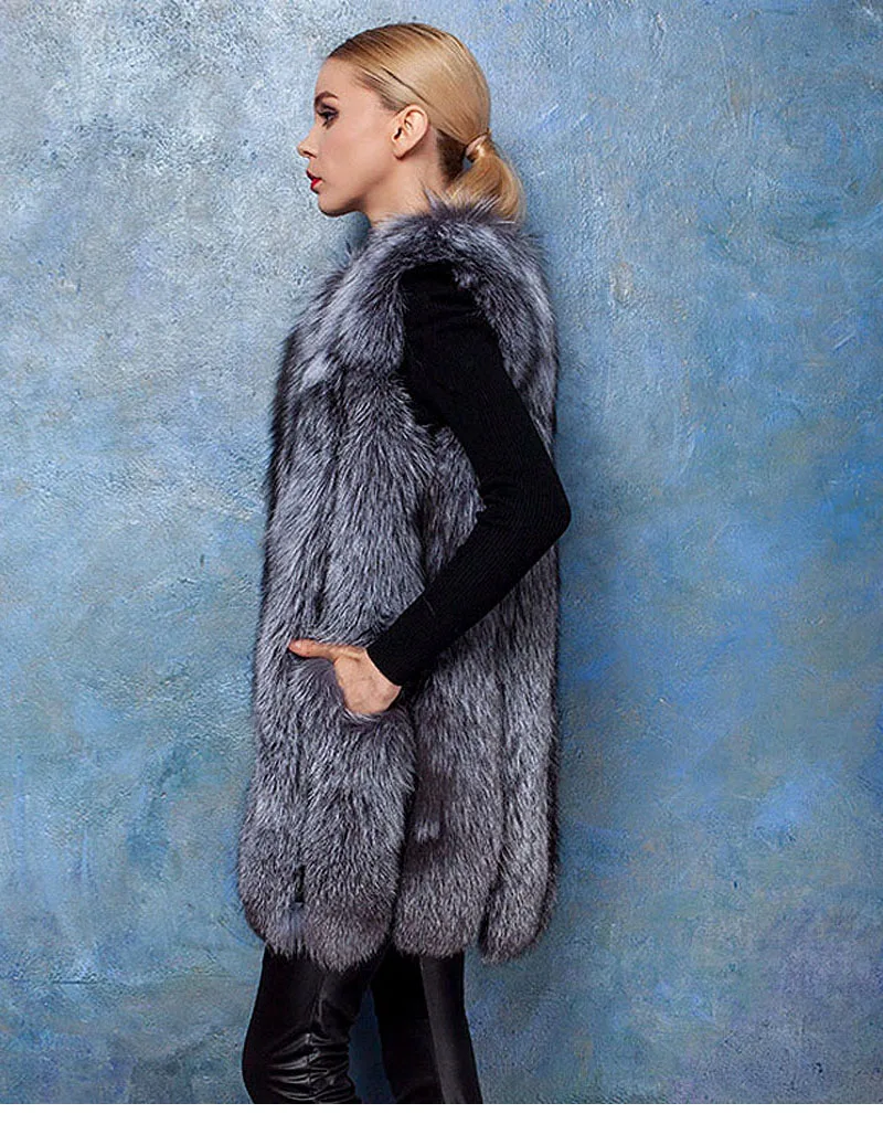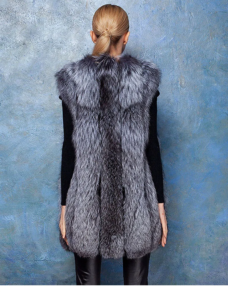 Camiseta sin mangas de piel de zorro natural para mujer: