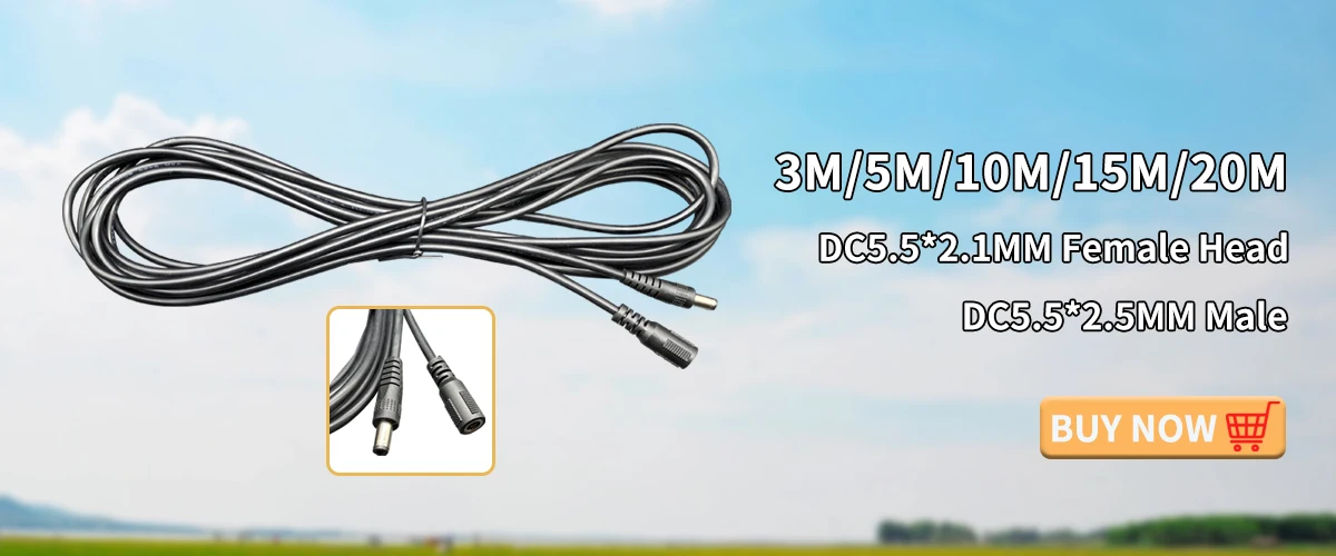 Привет, если вам нужен Удлинительный кабель питания, вы можете нажать на картинку ниже, чтобы использовать этот Удлинительный кабель. Есть опционально 3M/5M/10M/15M/20M. (Если место установки находится не рядом с источником питания, возможно, вам понадобится этот Удлинительный кабель.)