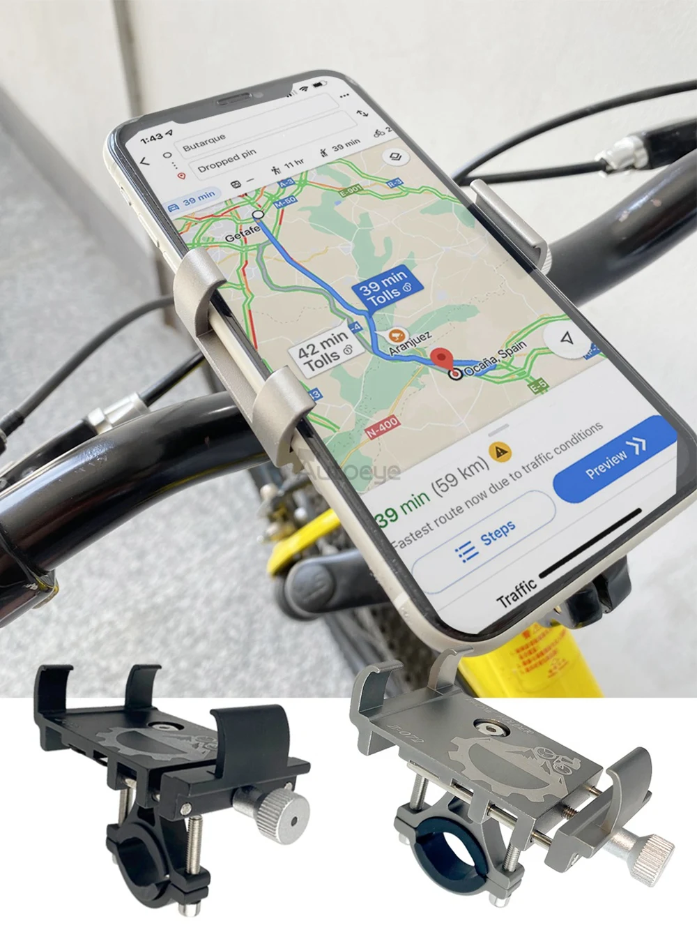 Держатель для телефона из алюминиевого сплава с ЧПУ для велосипеда, MTB, крепление для мотоцикла, умный мобильный телефон, стойка для мобильного телефона, электрический велосипед, велосипедный кронштейн, Moto Mirro, руль, зажим, GPS, универсальные аксессуары для велосипеда, нескользящая Регулируемая Нескользящая поддержка смартфона Xiaomi iPhone
