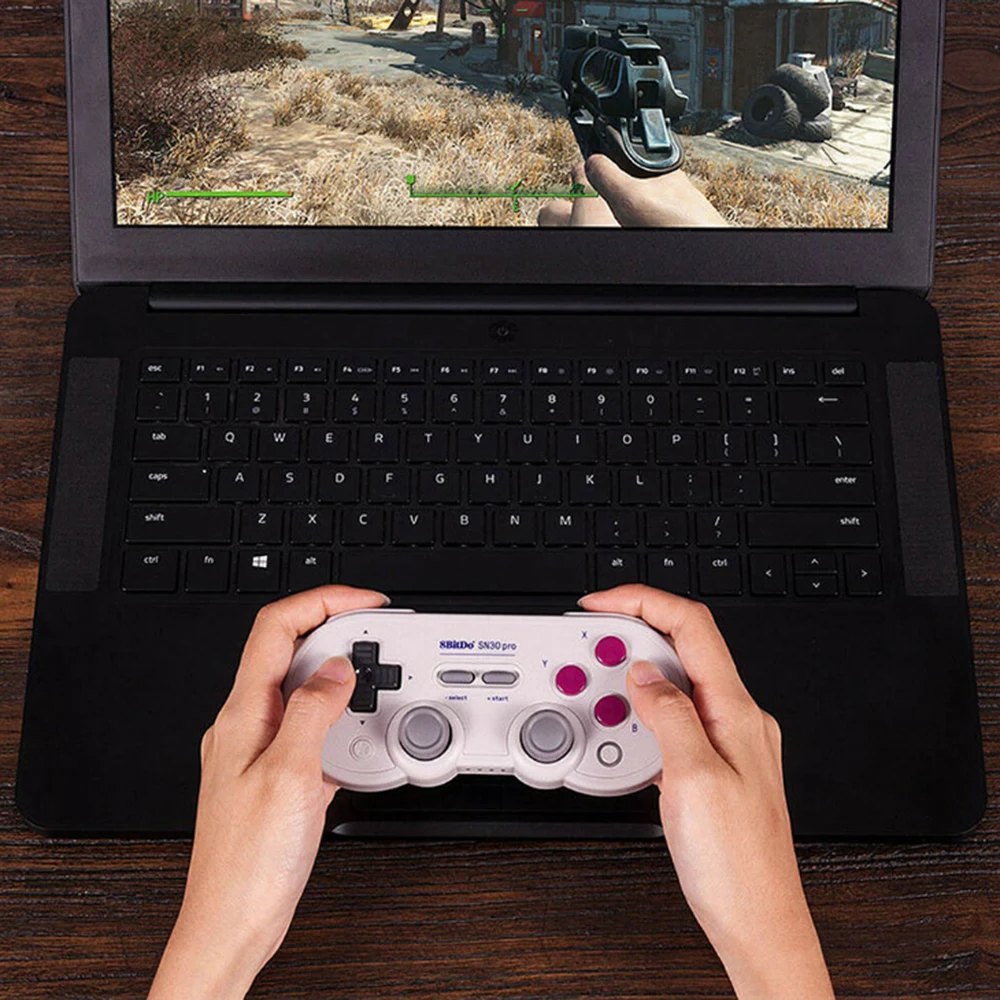 8bitdo SN30 Pro беспроводной Bluetooth игровой контроллер, с классическим D-pad и расположение кнопок, напоминает вам о необходимости зарядки Ретро 8-битный игровые консоли из 80-х годов и 90-х. 8bitdo SN30 Pro беспроводной Bluetooth игровой контроллер работает с вашим телефоном, чтобы играть в приложения, используя игровой контроллер с реальным тактильным входом. Он также поддерживает Windows, Android, macOS, пар, Nintendo Switch. 8bitdo SN30 Pro беспроводной игровой bluetooth-контроллер является лучшим для тушения пожара, стрельбы и Эмулятор игры.