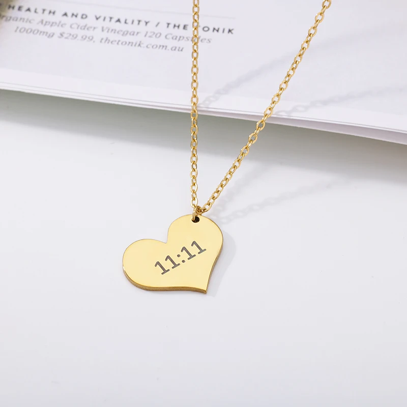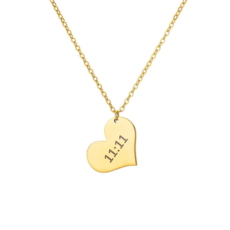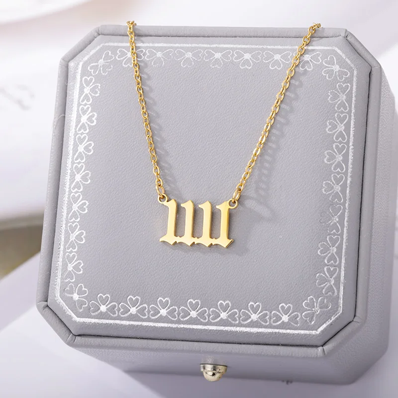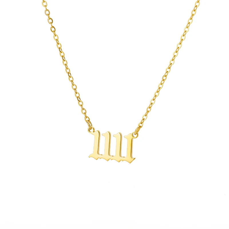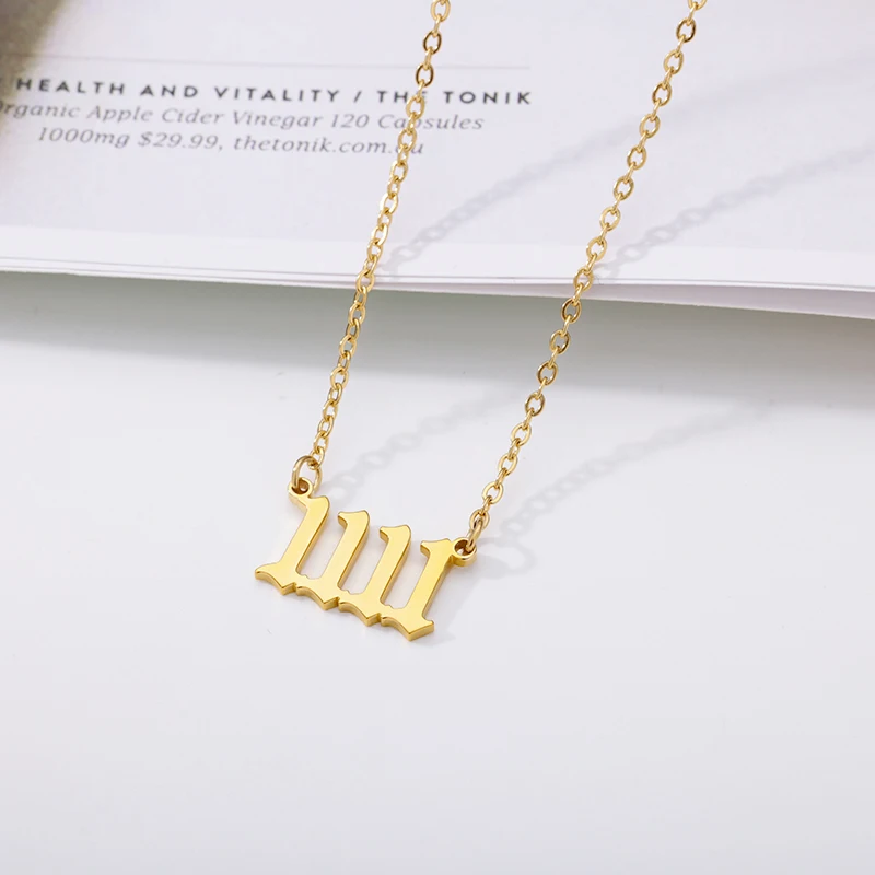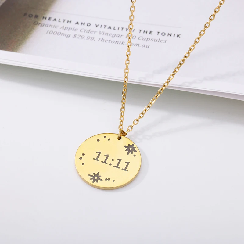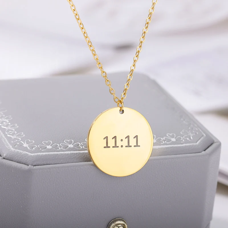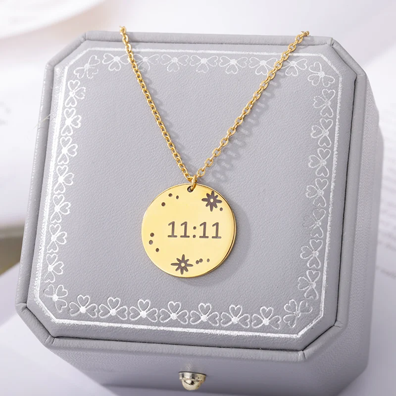 Creative 11:11 Number Square Pendant Necklace For Women Gold Stainless Steel Engraved Angel Number Necklace Jewelry Gift
