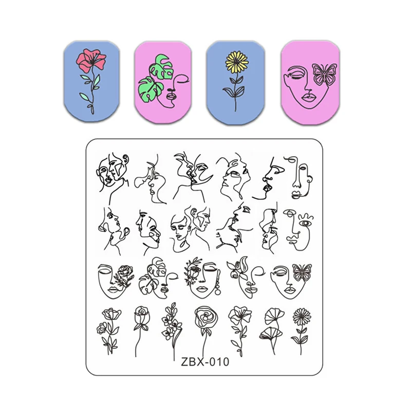 Bubble Nail Stamping Plates Abstract People Face Image Stamp Templates Snake Graffiti Nail Flower Leaf Lines Transfer Stencil