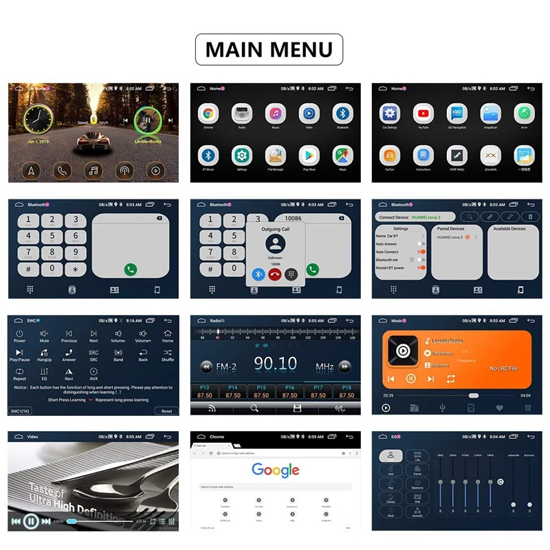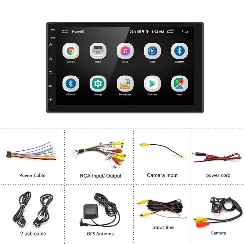 Для Android автомобильный стерео: 7 дюймов HD 1080P постоянной ёмкости, универсальный конденсатор Пресс экран радио с функциями ОС предотвращает появление царапин, прочный армированный чехол для телефона, защита от высоких температур. Есть порты dual USB и RCA выход/вход. 1G + 16G хранилище