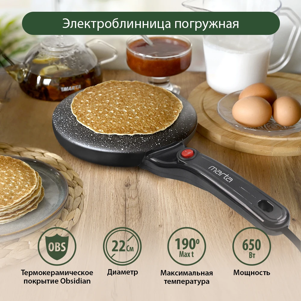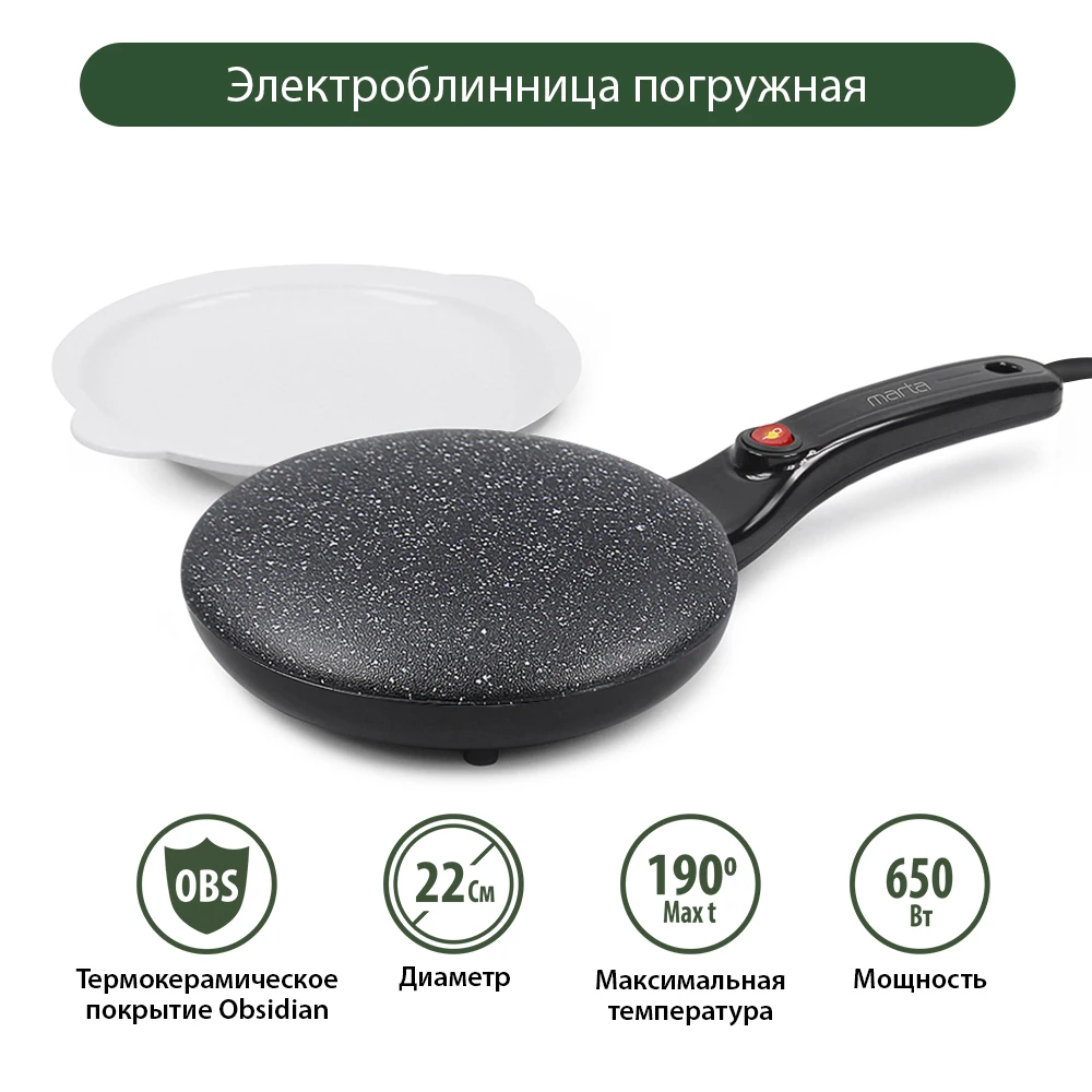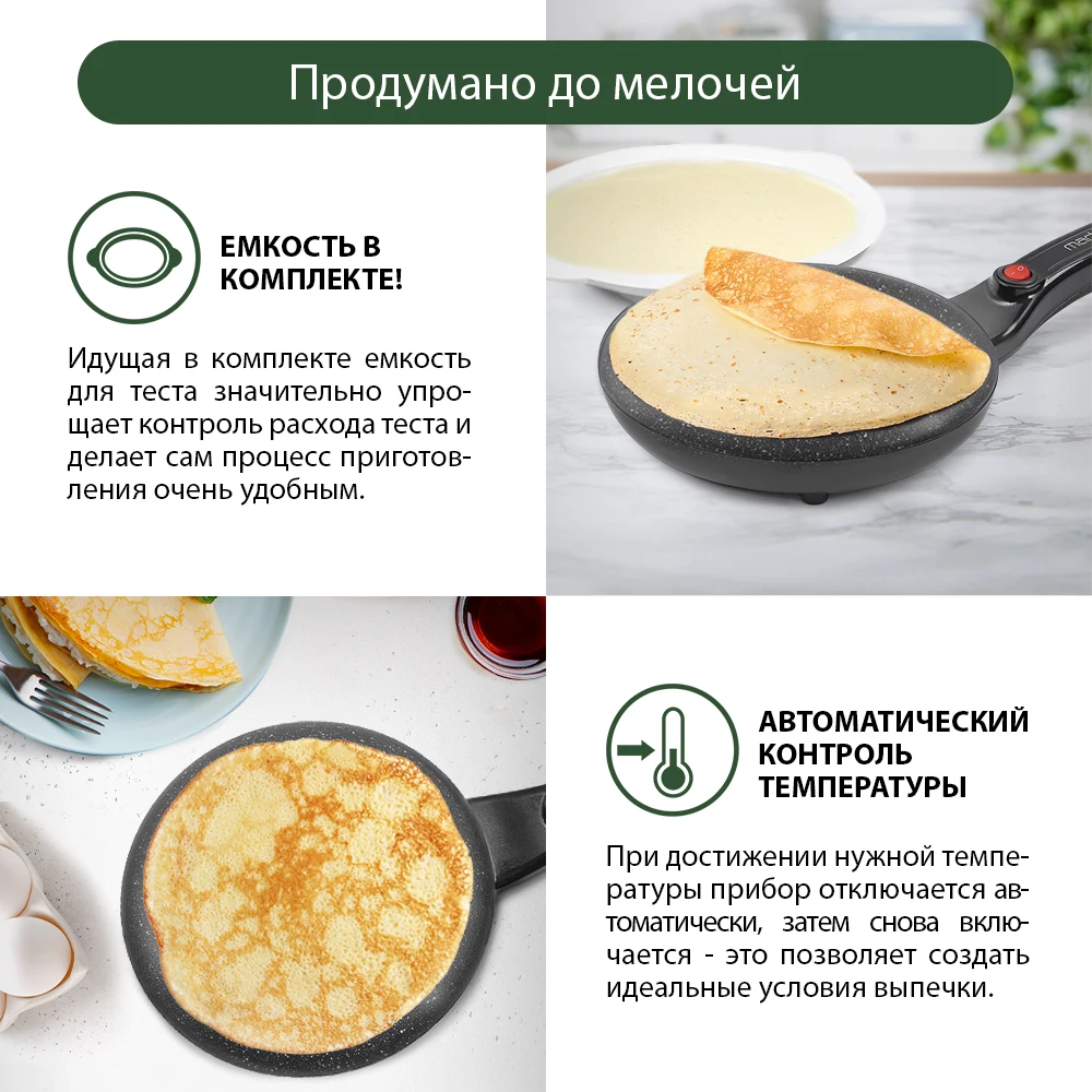 Мощная и надежная электроблинница, которая позволяет быстро готовить тонкие блины с равномерной степенью прожарки с обеих сторон. Антипригарное покрытие не только сводит на нет использование масла для жарки, но и исключает вероятность пригорания по всей площади рабочей поверхности. Световой индикатор покажет, что устройство готово к работе, а идущая в комплекте емкость для теста значительно упрощает контроль расхода теста и упрощает сам процесс приготовления. Эта техника не занимает много места, её можно использовать там, где вам удобно. Небольшие размеры существенно упрощают её хранение.