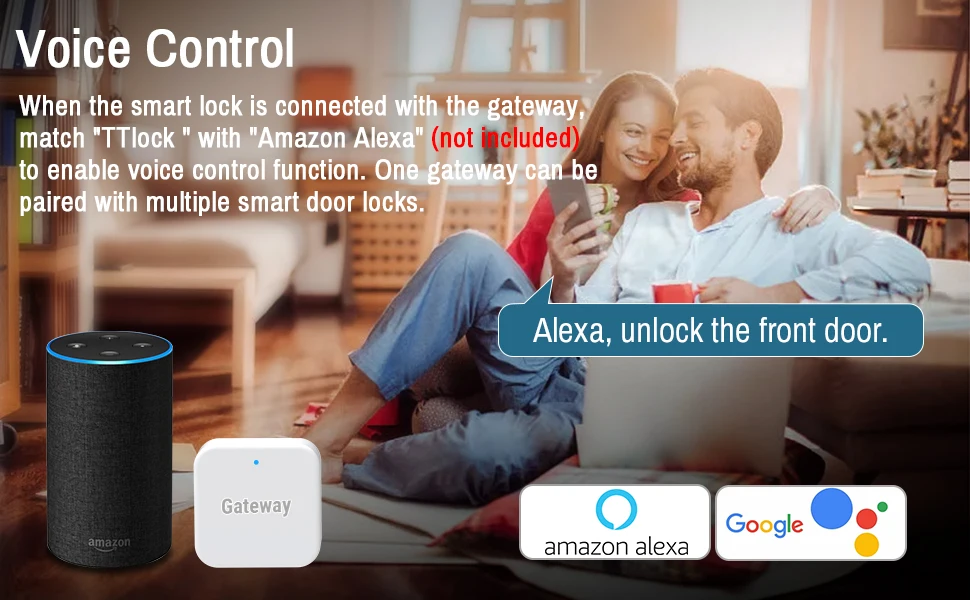 TTLock APP Version + Gateway: passcode /key / fingerprint / TTLock APP ( bluetooth) / Alexa & Google
