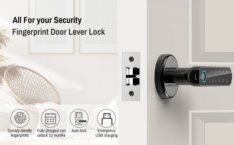 DescriptionTTLock APP Smart Lock Fingerprint DoorLock Keyless Entry Door Lock Passcodes Unlock for Home, Apartment, Office, Front Door, Bedroom, Black