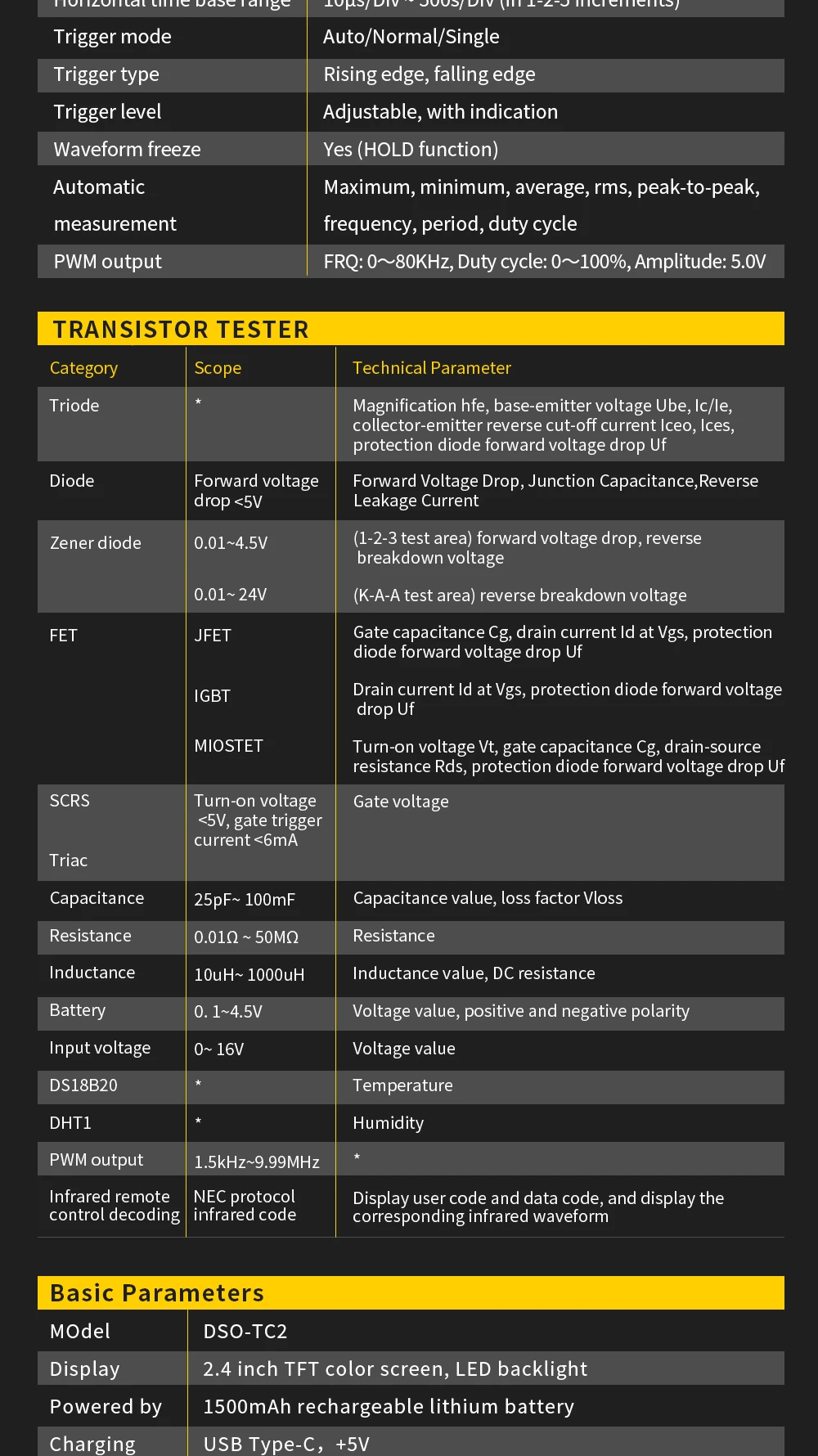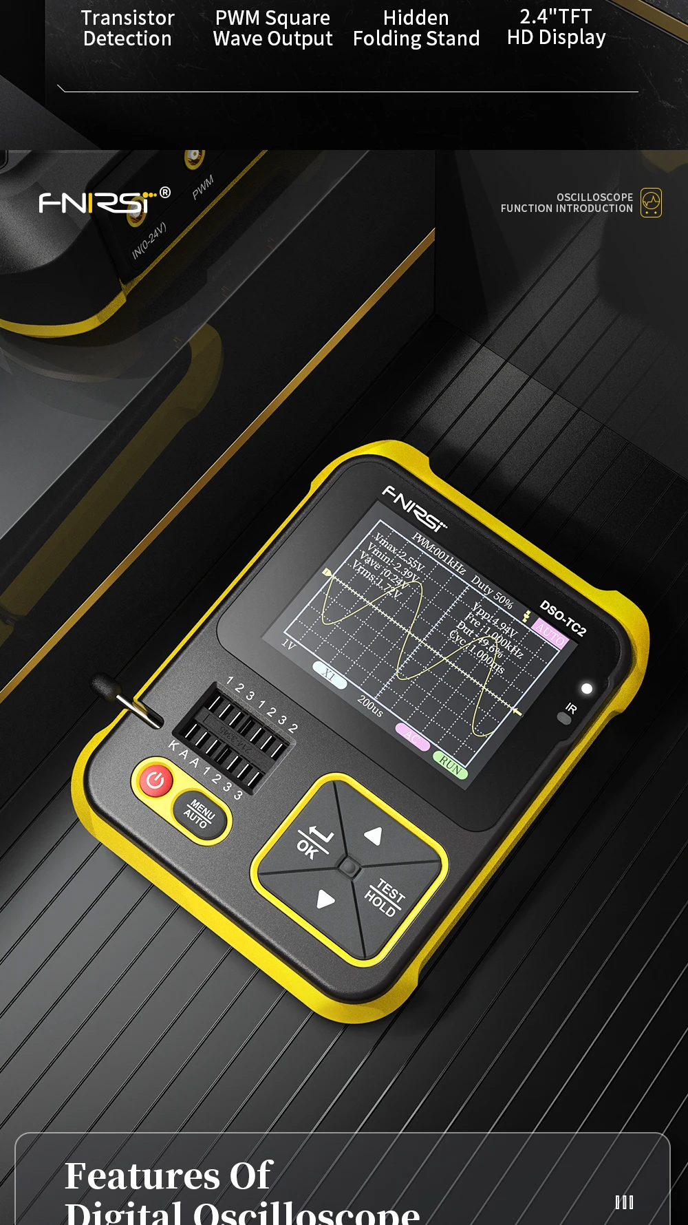FNIRSI DSO-TC2 Портативный цифровой осциллограф прибор для проверки транзисторов 2 в 1 Многофункциональный мультиметр диод Напряжение LCR обнаружения ШИМ-выход
